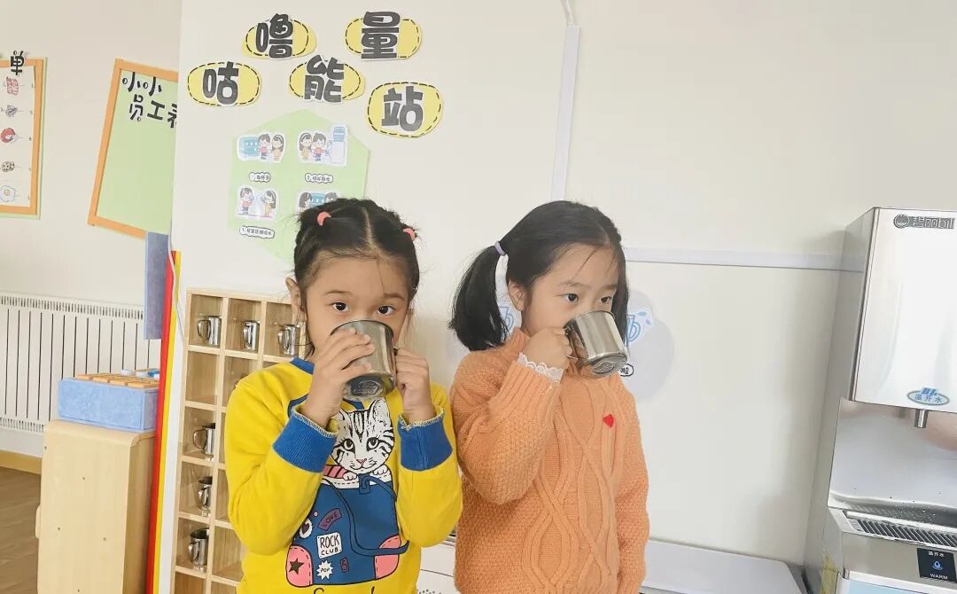 在幼儿园里卫生保健远不止这些。每天喝足量的水对孩子来说是必不可少的。于是,各班童趣化的呈现,让幼儿爱喝水、喝足水。