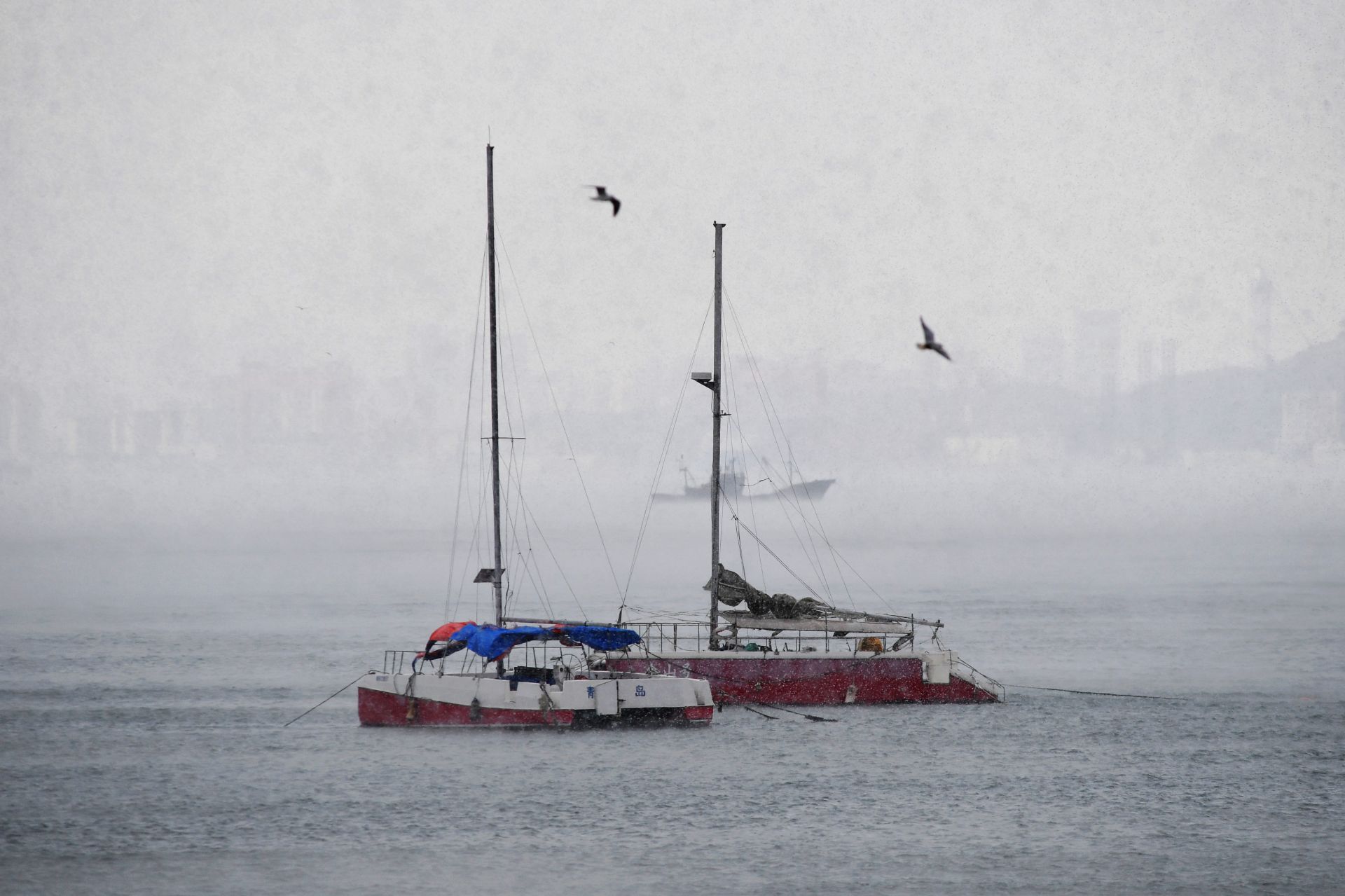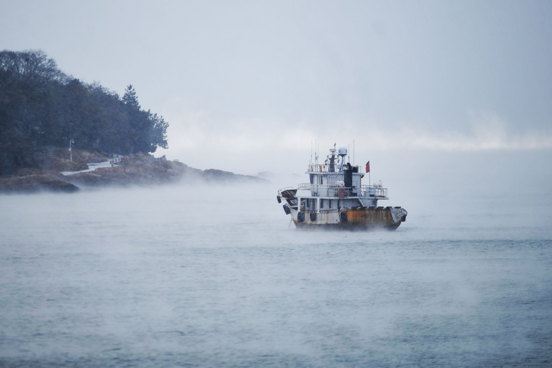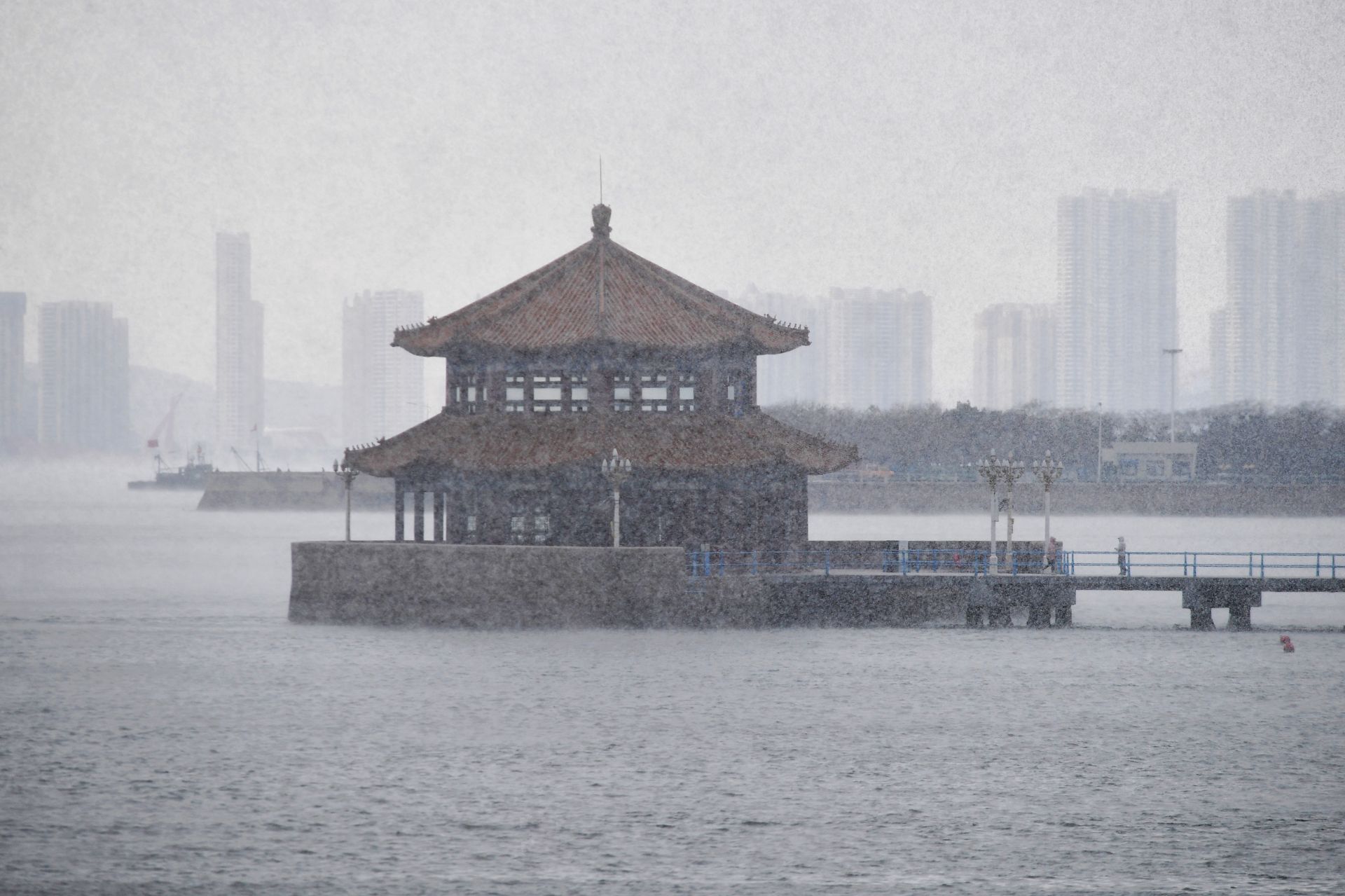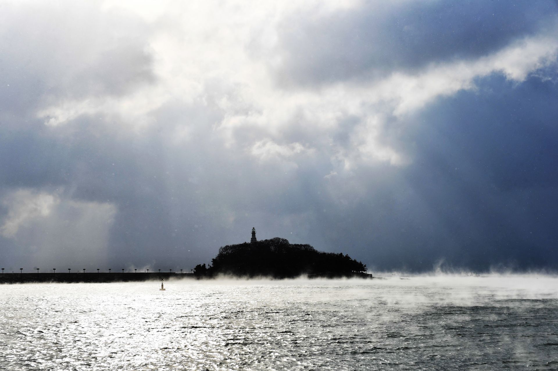 回澜阁、小青岛与“海浩”同框是什么画风?“仙境版青岛”来了 2022-12-01 13:18 王海滨 受寒潮影响,青岛市栈桥景区出现“海浩”奇观,大海犹如“开锅”一般水汽缭绕,蒸汽升腾,仿佛进入到了仙境。(观海特约摄影师 王海滨 摄 责任编辑 樊蓉) “海浩”是指低温时,海面上呈现出好像“白茫茫云雾”的现象。 “海浩”现象的出现需要具有温度差和凝结核两个条件,海水温度高于空气温度,海水蒸发为水蒸气,遇到冷空气后迅速凝结为冰晶。 在蒸腾水汽中的“小青岛”。 海军博物馆区域水汽蒸腾。 雪中的栈桥回澜阁。 帆船停泊在海上。
