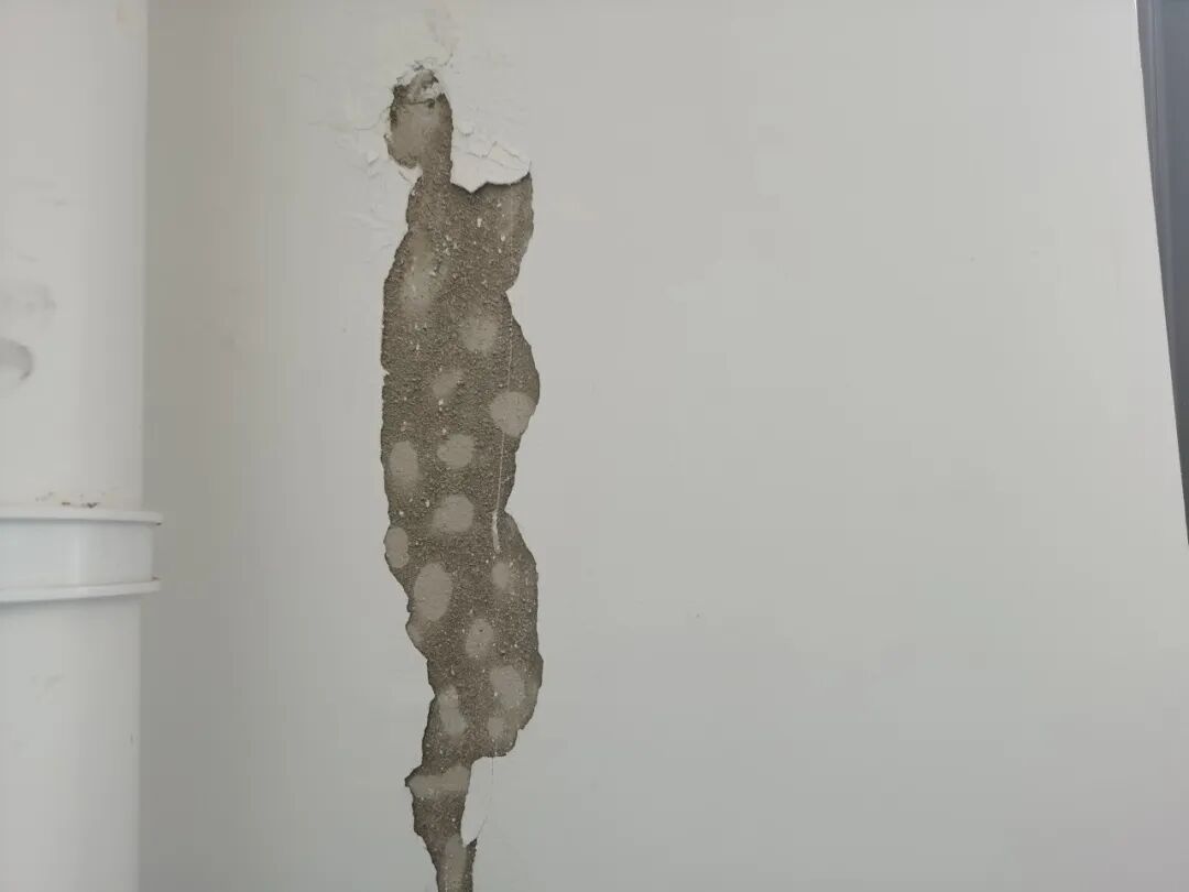 “真是一户一个样,里面的墙体裂缝反映到外面墙皮就鼓起了包,这个问题得抓紧找开发商解决,时间久了如果楼体沉降这个裂纹会越来越大。”看到这种情况后,薛总监赶紧提醒业主李先生注意。