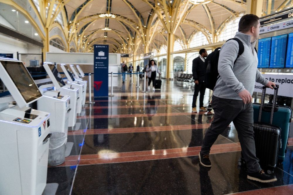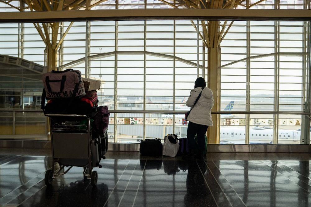 1月11日,一名旅客在美国弗吉尼亚州阿灵顿的里根国家机场等待。新华社记者刘杰摄