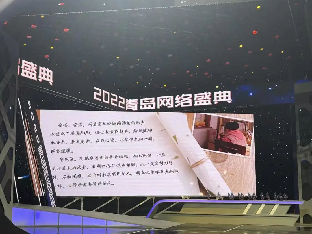 网聚正能量,温暖一座城。2月2日晚,2022青岛网络盛典在青岛市广播电视台举行。盛典现场,获奖单位(个人)和来自机关、企业、机构以及自媒体行业的代表齐聚一堂,共同见证了青岛市2022年网络优秀评选获奖项目的揭晓,共同分享了2022年网络空间中属于青岛独家的城市记忆。点滴微光汇聚城市大爱,摄影师孙玉龙的一次“妙手偶得”,让家乡青岛的城市形象再次“出圈”;刷屏朋友圈帮患有先天性耳聋的女孩小雨找寻丢失的人工耳蜗,让人们感受到了青岛人的古道热肠;一方有难八方支援,“羊汤奶奶”的故事刷爆全网,也让人们看到了在这座城市间流淌的涓涓善意……