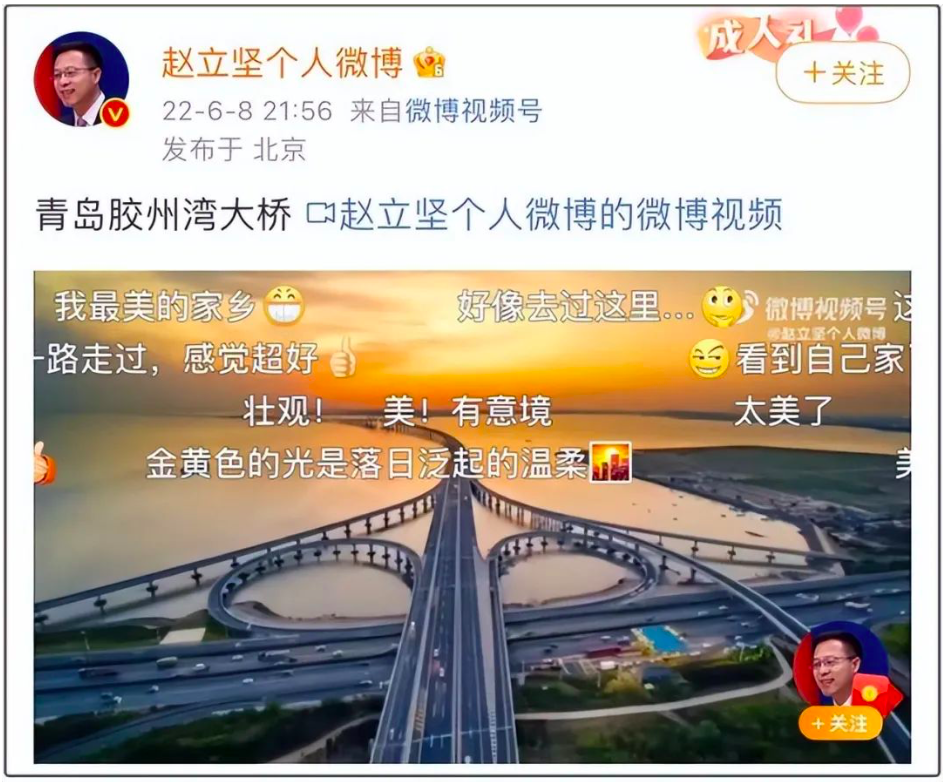 网络链接世界的美好,记录时代的故事,传递温暖的声音。于每一个青岛人而言,对自己家乡的热爱是刻入DNA的。2022年春节,青岛“网红天团”成员钟浩在抖音上看到一位外地游客抱怨青岛海水浑浊、海鲜不新鲜、停车不便捷后,当即向青岛市委网信办反映,并马上跑到现场核实后私信博主。经过沟通,对方意识到存在过度解读的问题,删除了视频并重新发了一条澄清视频。“作为青岛‘网红天团’的一员,维护青岛形象,我义不容辞。我爱我的家乡。”钟浩如是说。“落日熔金,青岛胶州湾大桥如卧龙横卧碧海之上,巍峨壮丽。”2022年6月,中国外交部原发言人赵立坚先后在推特和微博上转发了一段视频,引发广大网友广泛关注。单是微博就引发了60万次观看,7000+人点赞,让世界再次看到了青岛的魅力。而这个视频的创作者正是青岛摄影师孙玉龙。