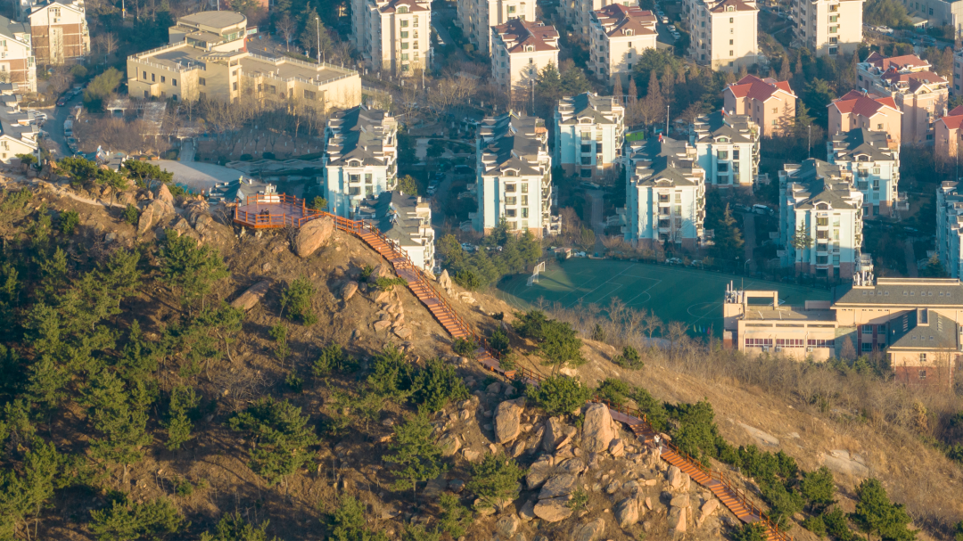 如今,这段木栈道已逐渐成为网红打卡地,不断吸引着人们来此登高远望,欣赏不一样的青岛风光。北望观城,南眺观海。改造提升后的浮山防火通道(绿道)不仅丰富了生态肌理,作为山林绿色健康的慢行系统,它还承载着城市空间展示、智慧科技、文化熏陶和知识科普的作用。