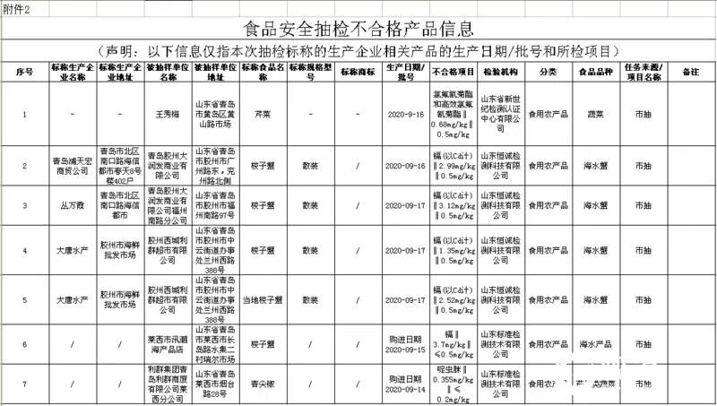 青岛日报社/观海新闻10月25日讯 23日,青岛市市场监管局公布了,今年第14期食品安全监督抽检信息通告,共发现不合格食品30批次,其中问题最多是梭子蟹、茶叶和餐具。