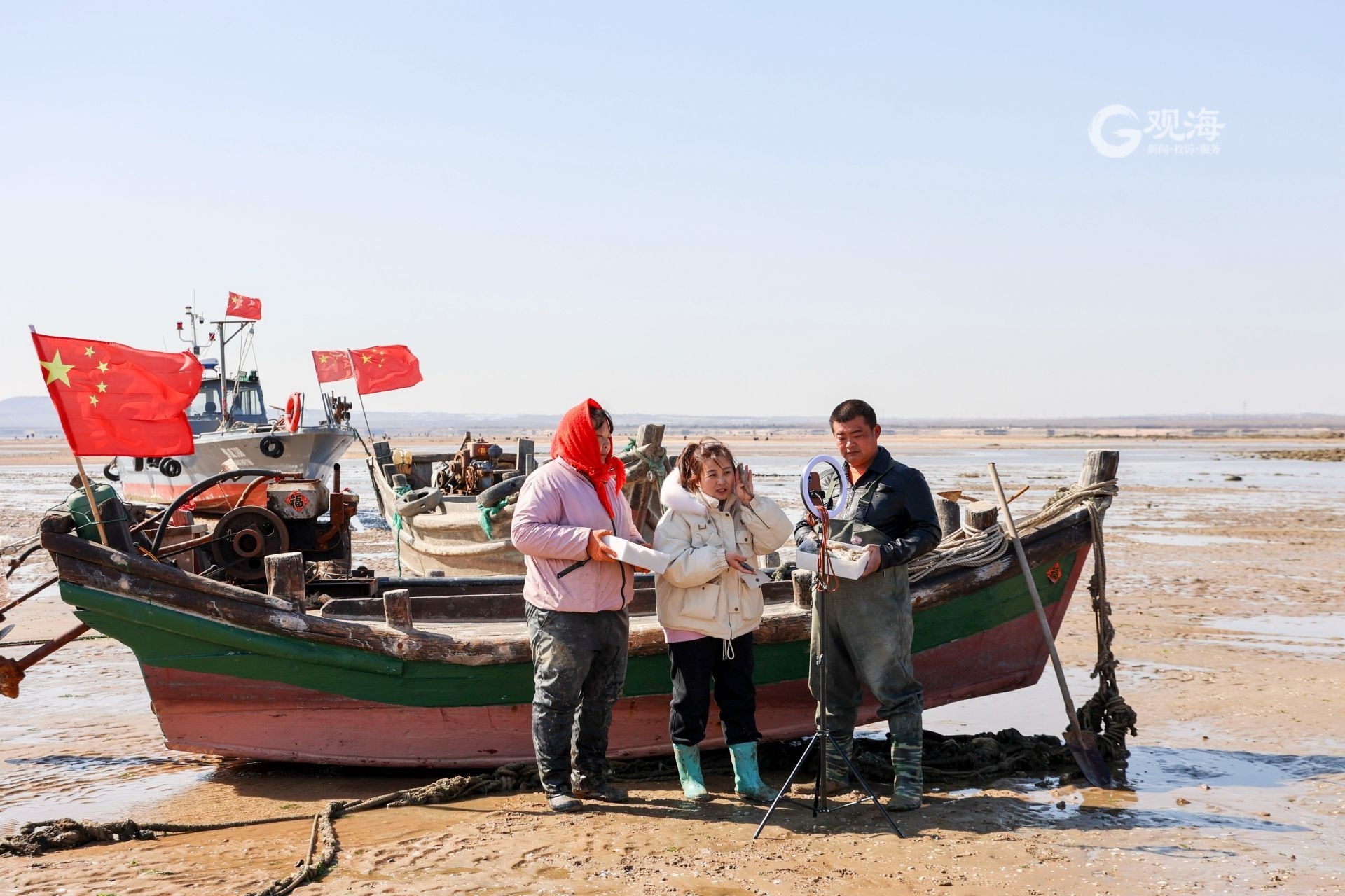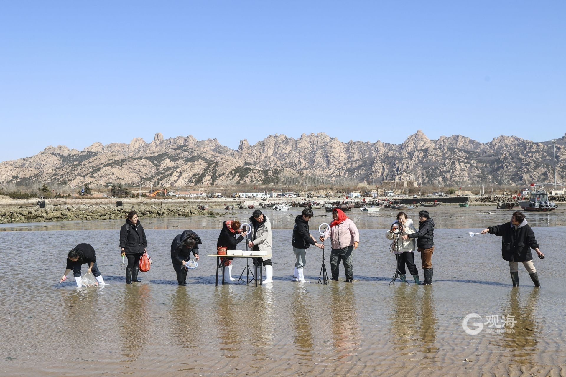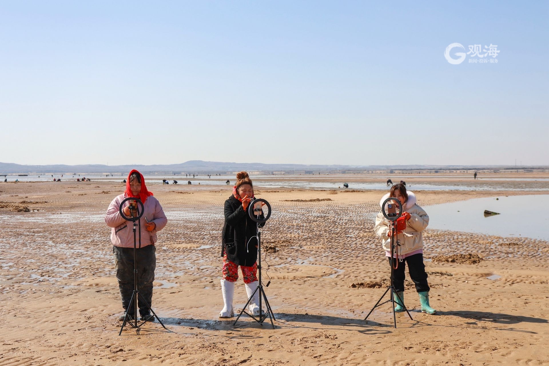 边挖蛤蜊边直播带货?青岛这群主播为了助农蛮拼的! 2023-02-22 11:20 青岛日报社/观海新闻 韩加君 近日,青岛西海岸新区滨海街道办事处东山张村直播带货基地,多名主播在滩涂上通过网络平台,现场为网友直播渔民们赶海挖蛤蜊、蛏子等,同时助销渔民们捕捞的虾、海蛎子等海产品,用直播的方式为渔民们助力分销。(观海特约摄影师 韩加君 摄 | 责任编辑 樊蓉) 主播们直播赶海现场。 主播云赶海,助力海产品线上销售。 滩涂上的“新渔人”。 渔民们和主播一起为网友们展示新鲜海产品。 主播为网友们展示赶海挖出来的海货。