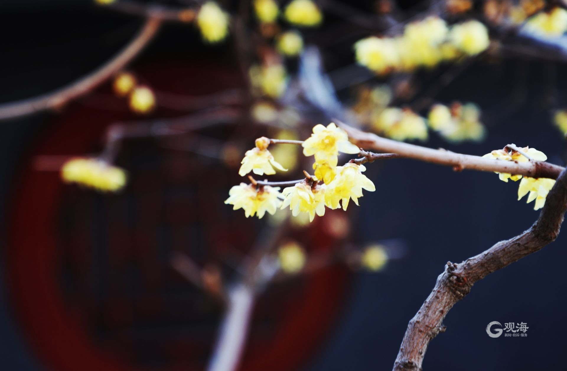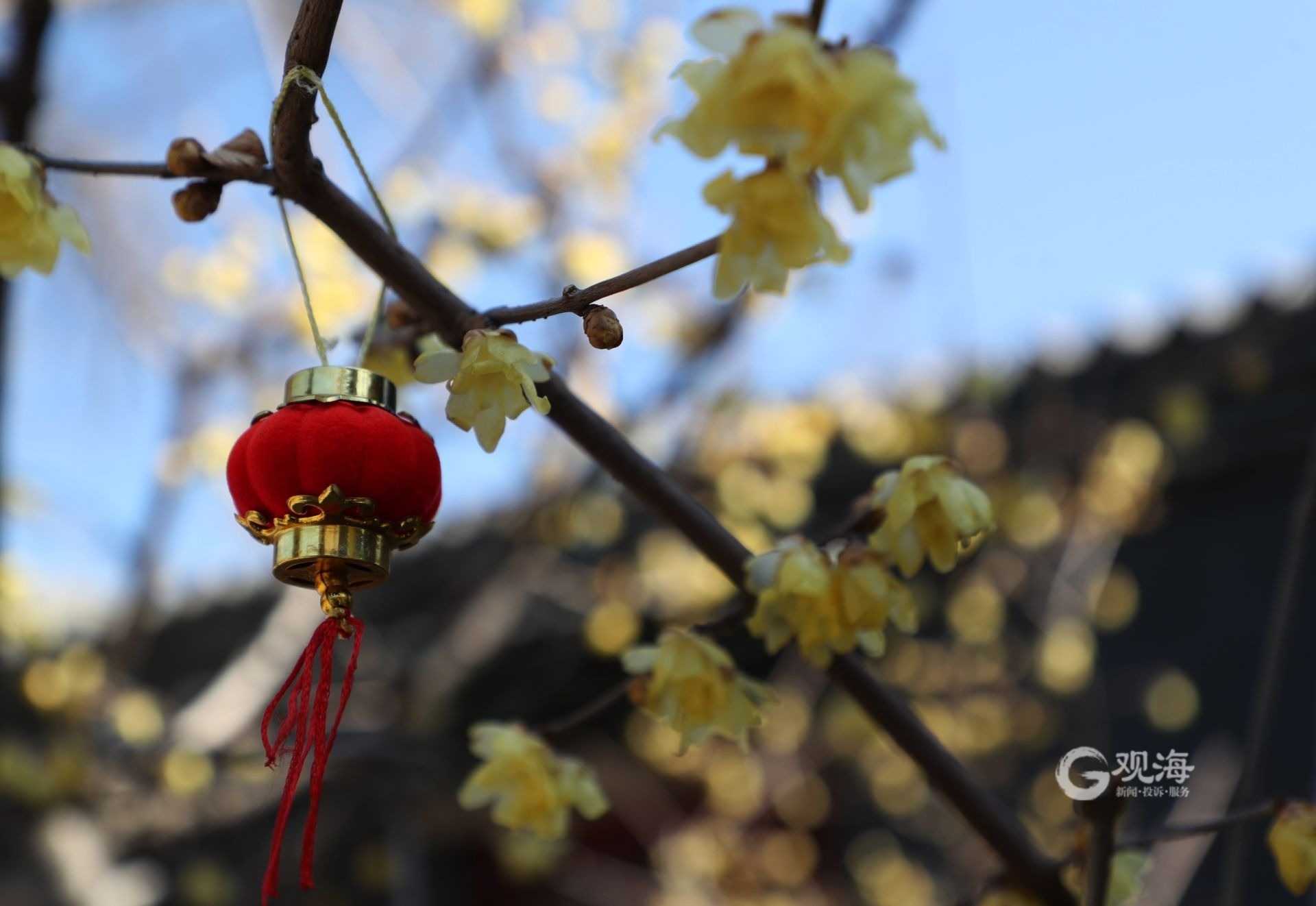 海云庵的梅香,你嗅到了吗? ©原创 2023-02-27 10:32 青岛日报社/观海新闻 樊蓉 始建于明朝,迄今已有500多年历史的海云庵初染春色。院内的腊梅迎来盛花期,嫩黄色的花朵挂满枝头,为乍暖还寒的春日增添了一抹靓丽的色彩。迈步靠近,阵阵清香沁入心脾,不禁让人想到那句“淡淡梅花香欲染”。(青岛日报社/观海新闻记者 樊蓉 摄 | 责任编辑 王雨欣) 梅花枝头开。 细嗅海云庵中的静谧花香。 祈福钟在风中摇摆。 阳光透过树枝照在花瓣上。 喜庆的小红灯笼悬挂在树梢上。