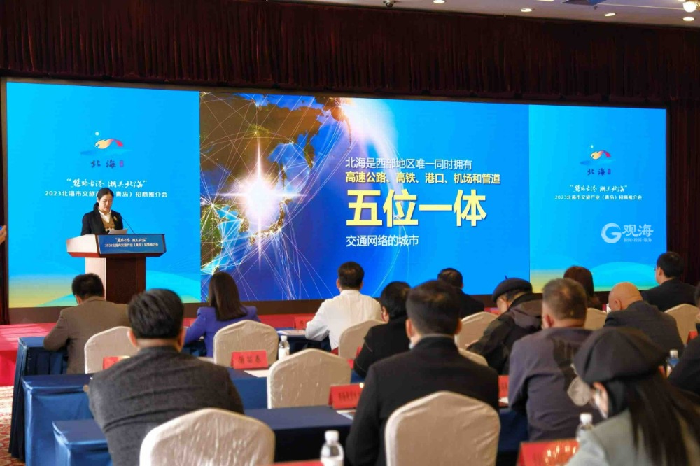 招商推介会上还进行了定向招商推介,北海市海城区、银海区、铁山港区、海洋产业科技园区、旅游集团相关领导详细介绍了有关旅游资源、招商环境和政策措施,推介了北部湾文化艺术中心、国家南方水上运动基地、银滩秀映潮雕区海上娱乐、银滩演绎剧场、黄金北岸休闲体育沙滩公园、外沙生猛海鲜休闲街区、海上休闲渔业观光、白龙珍珠文旅小镇等项目,引起与会企业热烈反响。