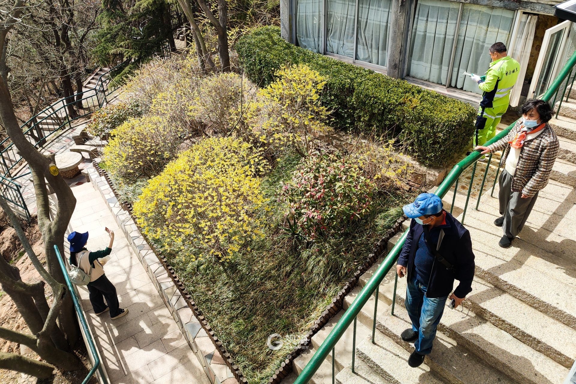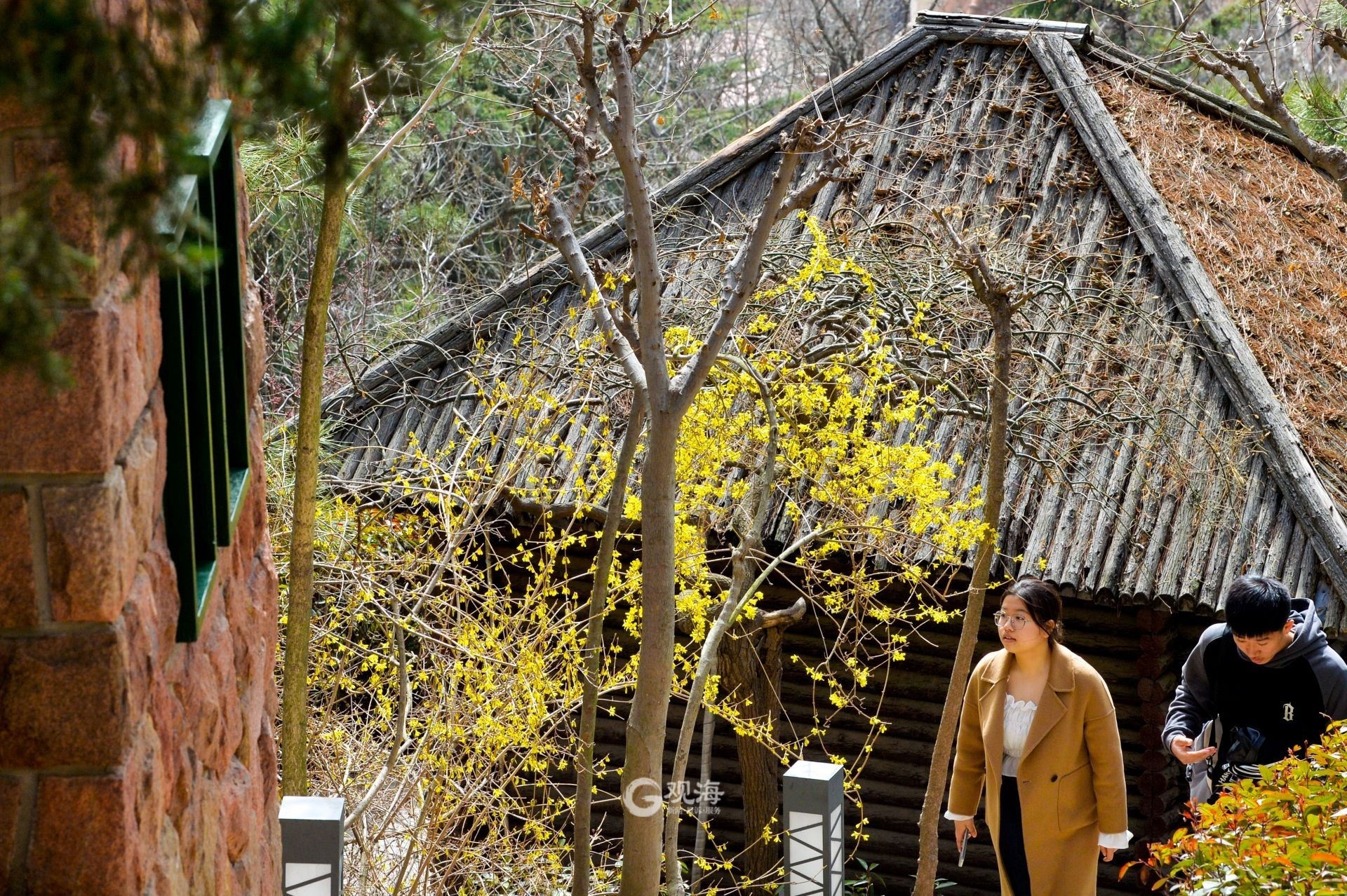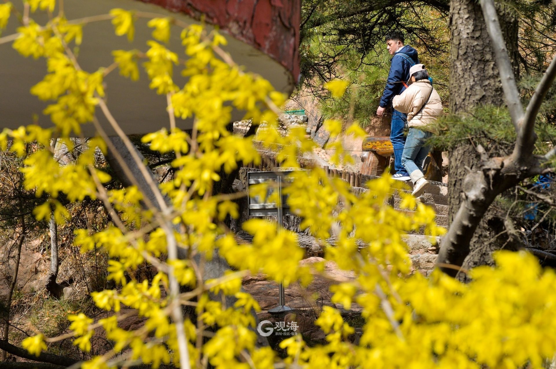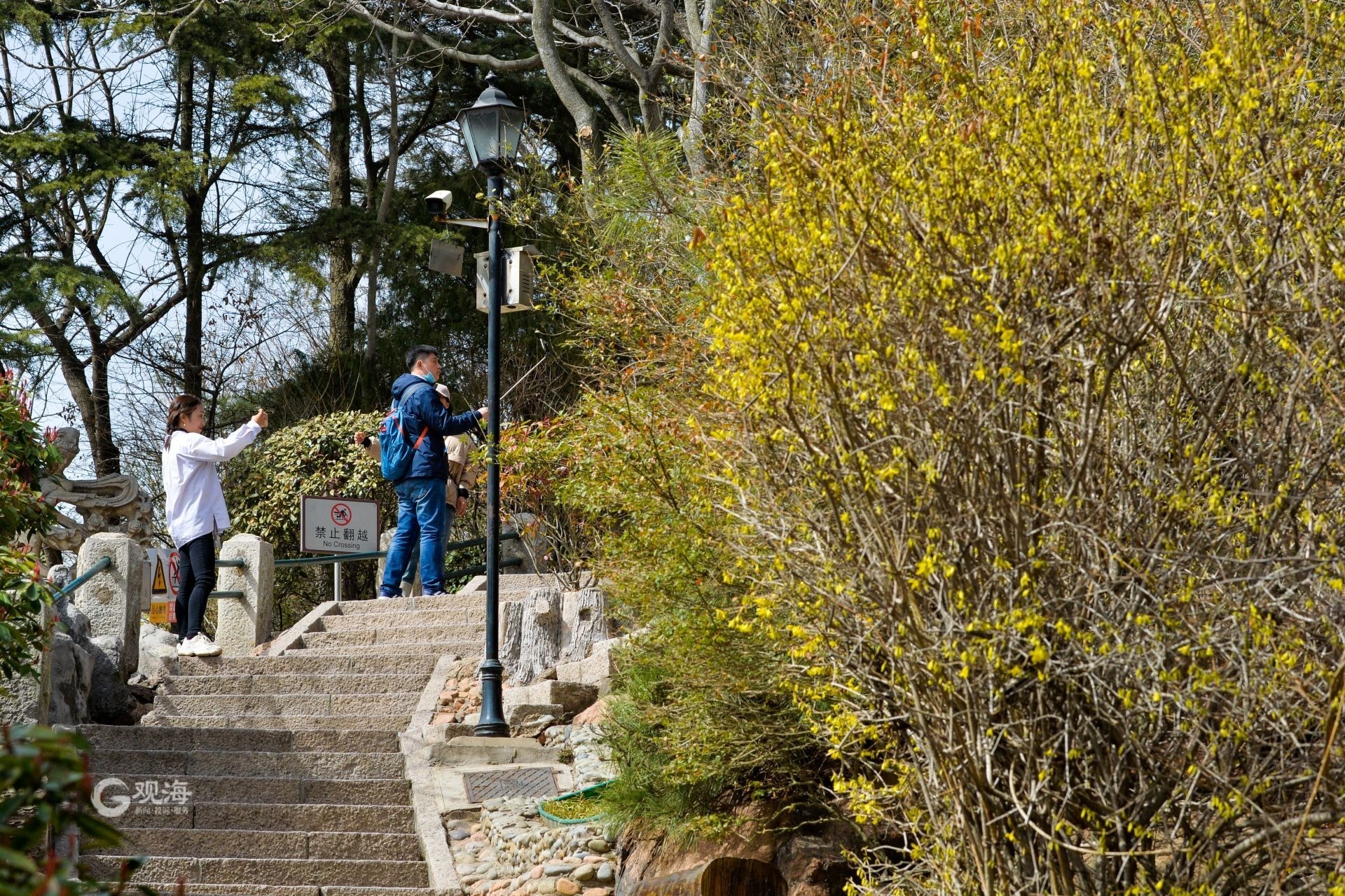 - 信号山上随处可见连翘花。