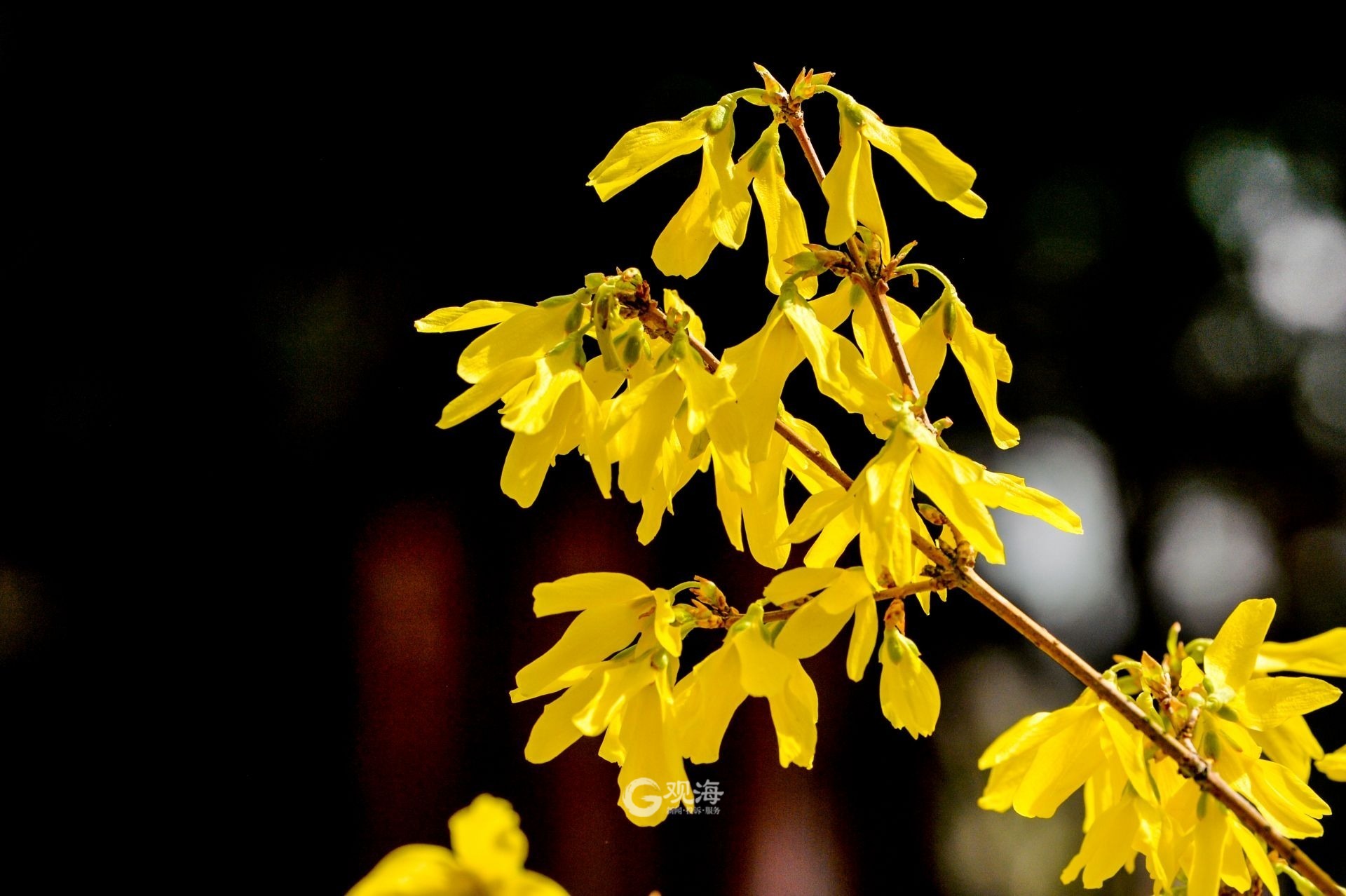 - 盛开的连翘花让人赏心悦目。