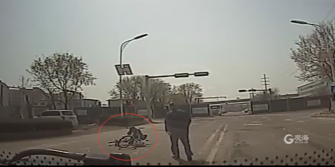遇到一位八旬老人骑单车摔倒在路中央