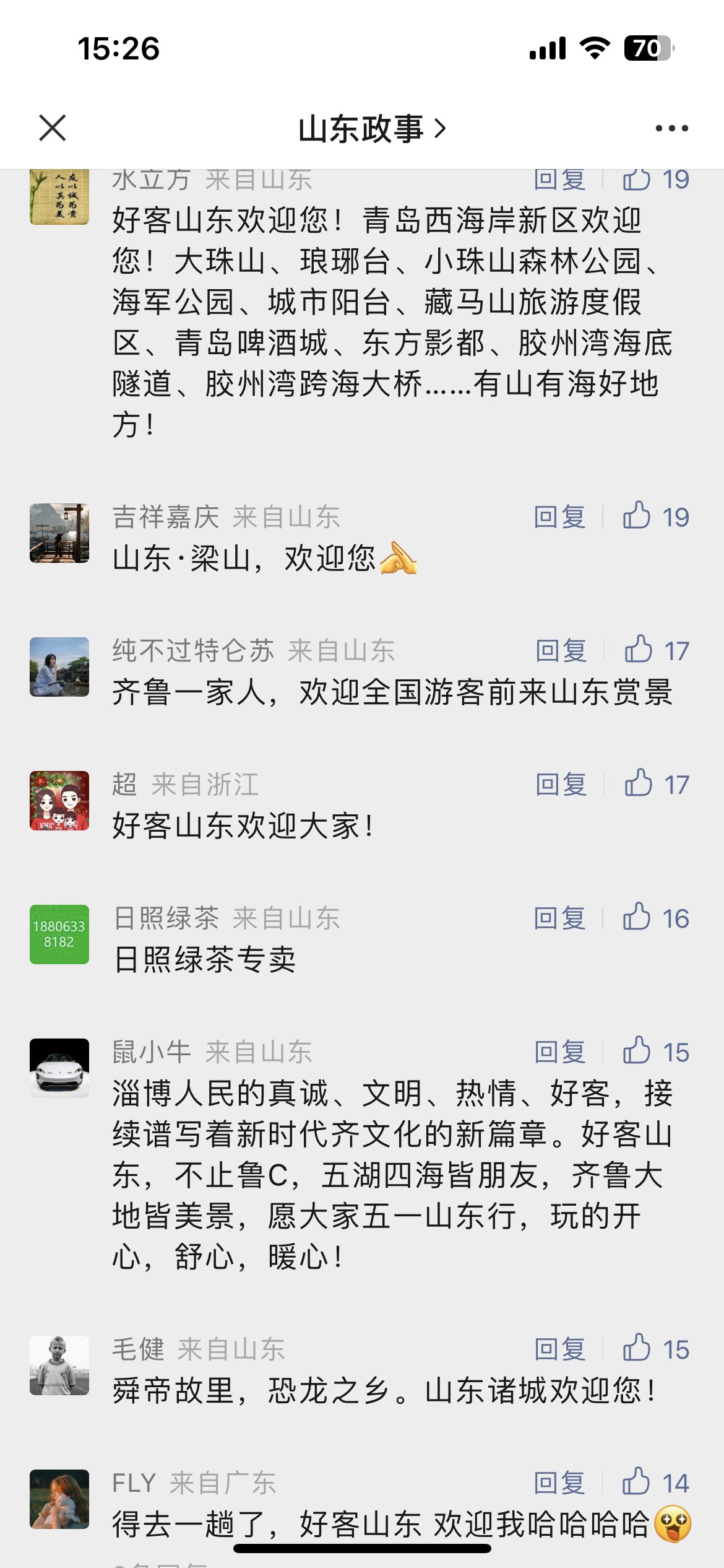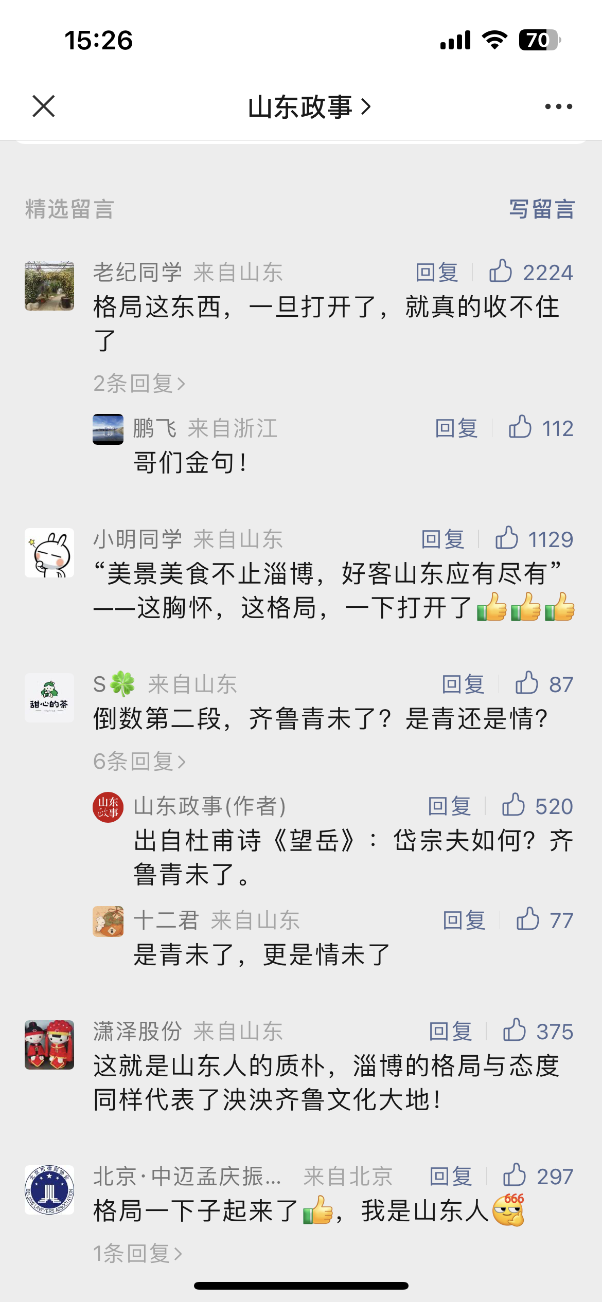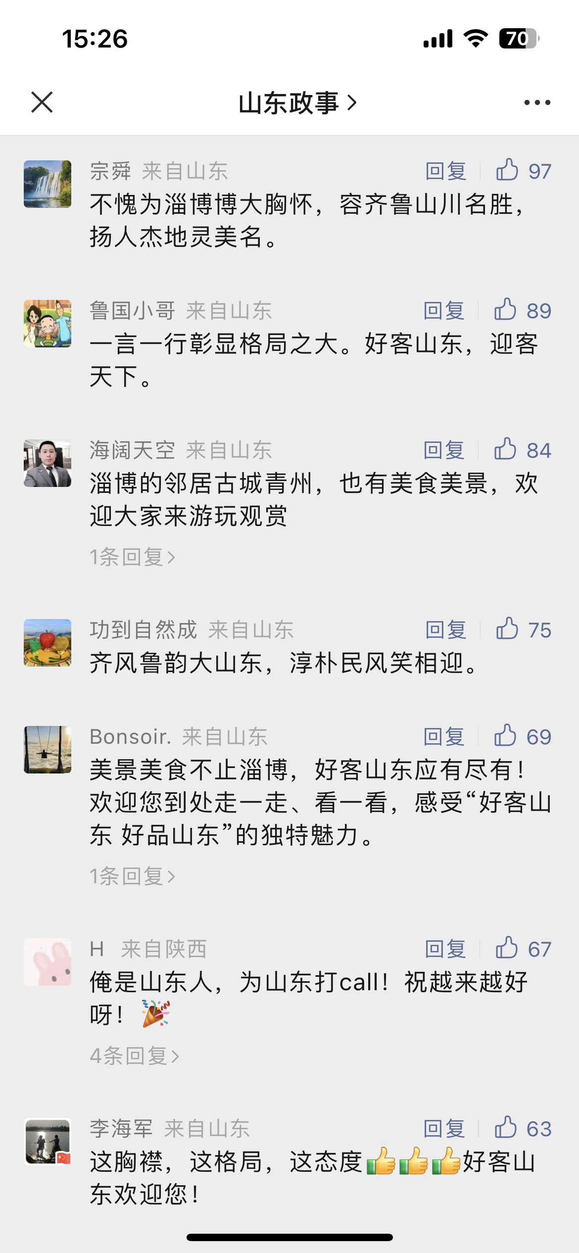 “有温度,有高度!”“格局打开了!”“淄博给游客写了封信,把兄弟地市都宣传了一遍!”不到1小时,“山东政事”等同步发布消息的微信公众号,阅读量迅速突破10万+。