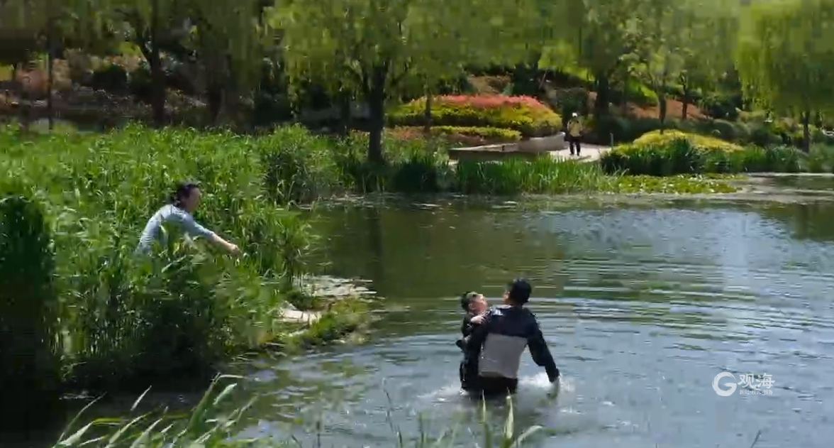 一把将孩子托住往岸边走去