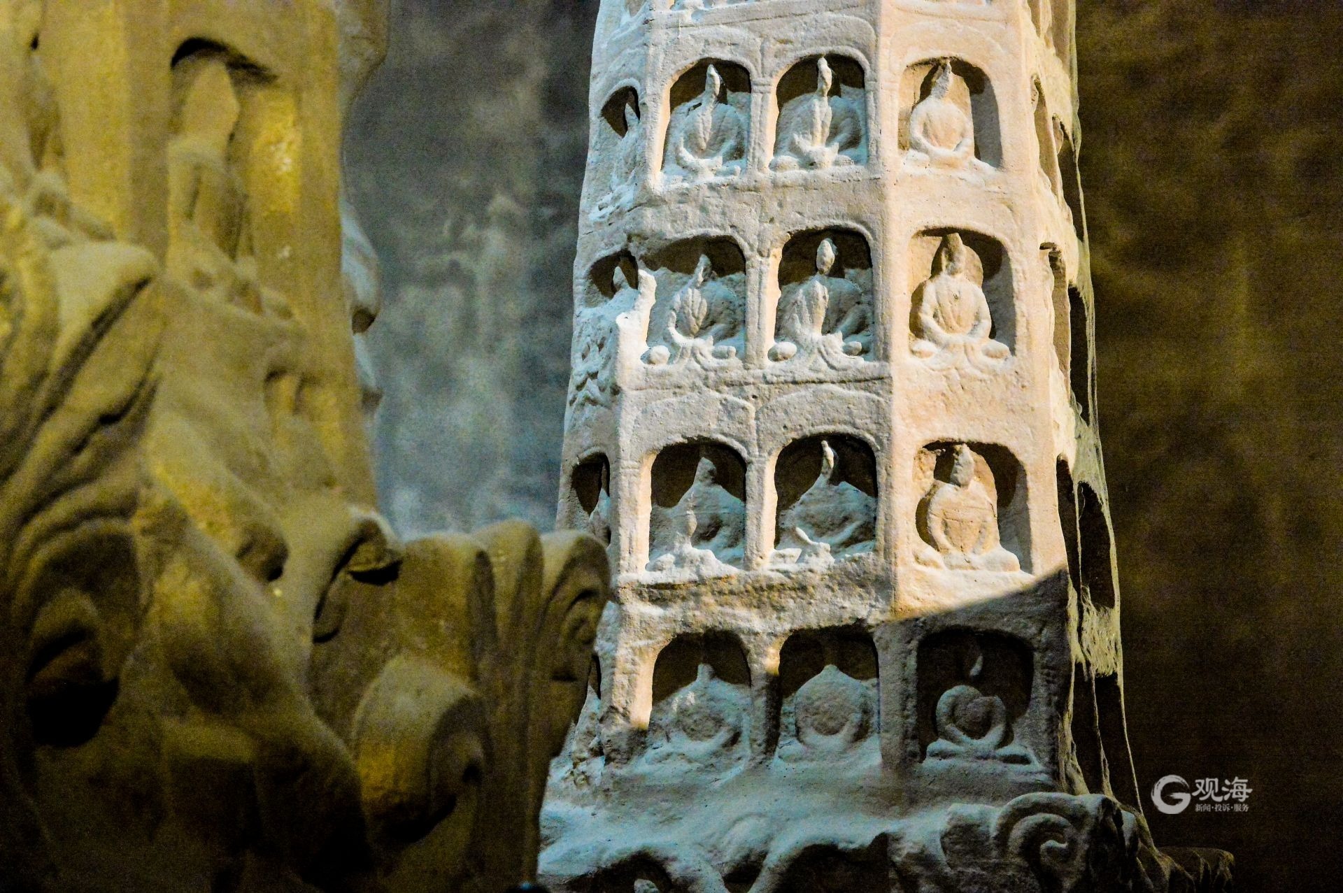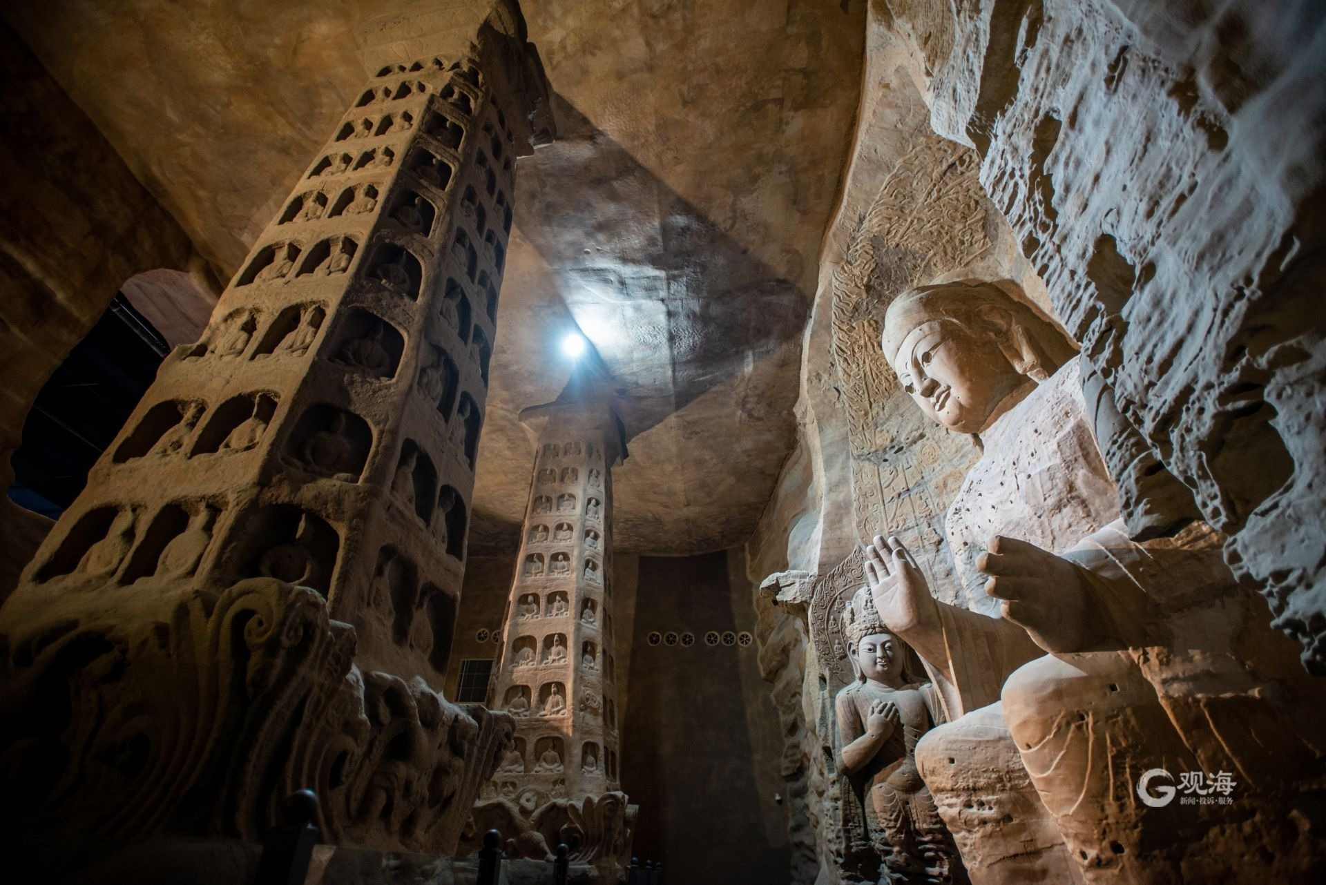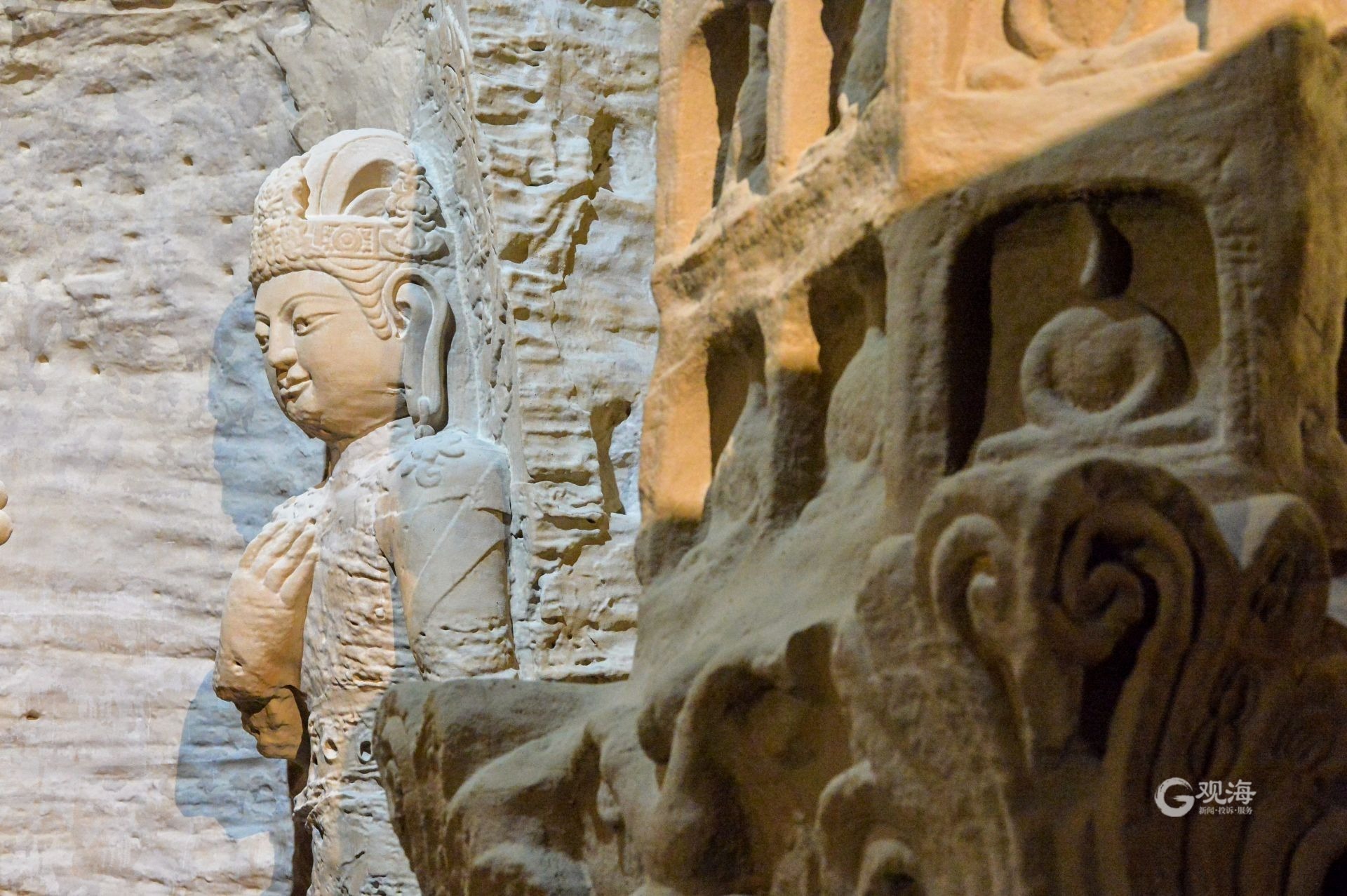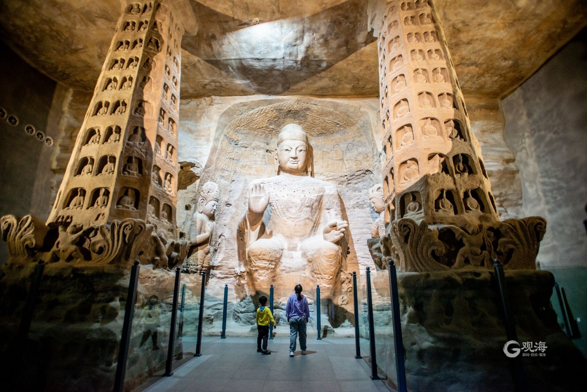 - 在青岛西海岸新区城市传媒广场的6楼有一家云冈石窟艺术馆,这里1:1复制了“云冈石窟第三窟”,免费向游人开放,成为新晋的网红打卡地。(青岛日报/观海新闻记者 于滈 摄影报道|责任编辑 樊蓉)