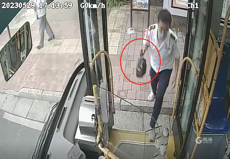 公交驾驶员刘晨光运行途中到此处时发现了背包