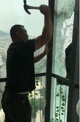 大厦内35层青岛谦顺投资管理有限公司的9名员工紧急砸窗