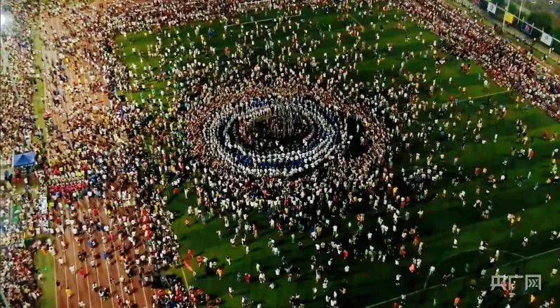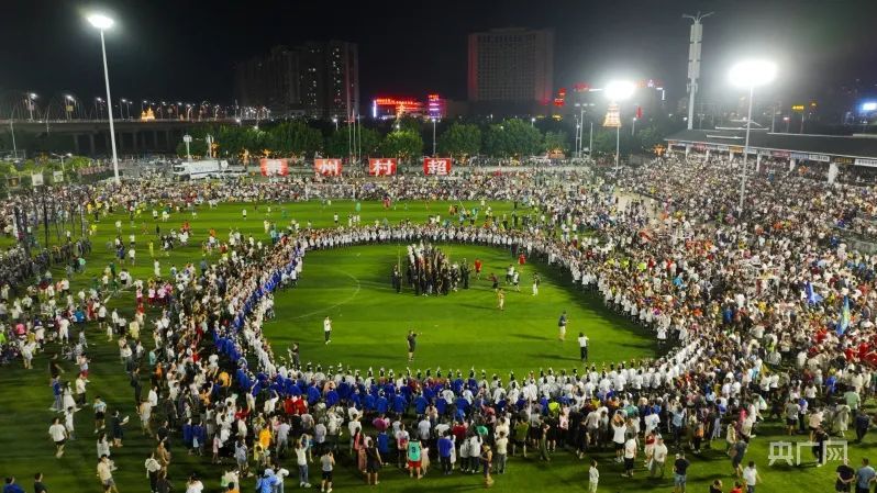 舞者与现场观众在足球场上跳起民族风情舞蹈(央广网发 榕江县融媒体中心供图)