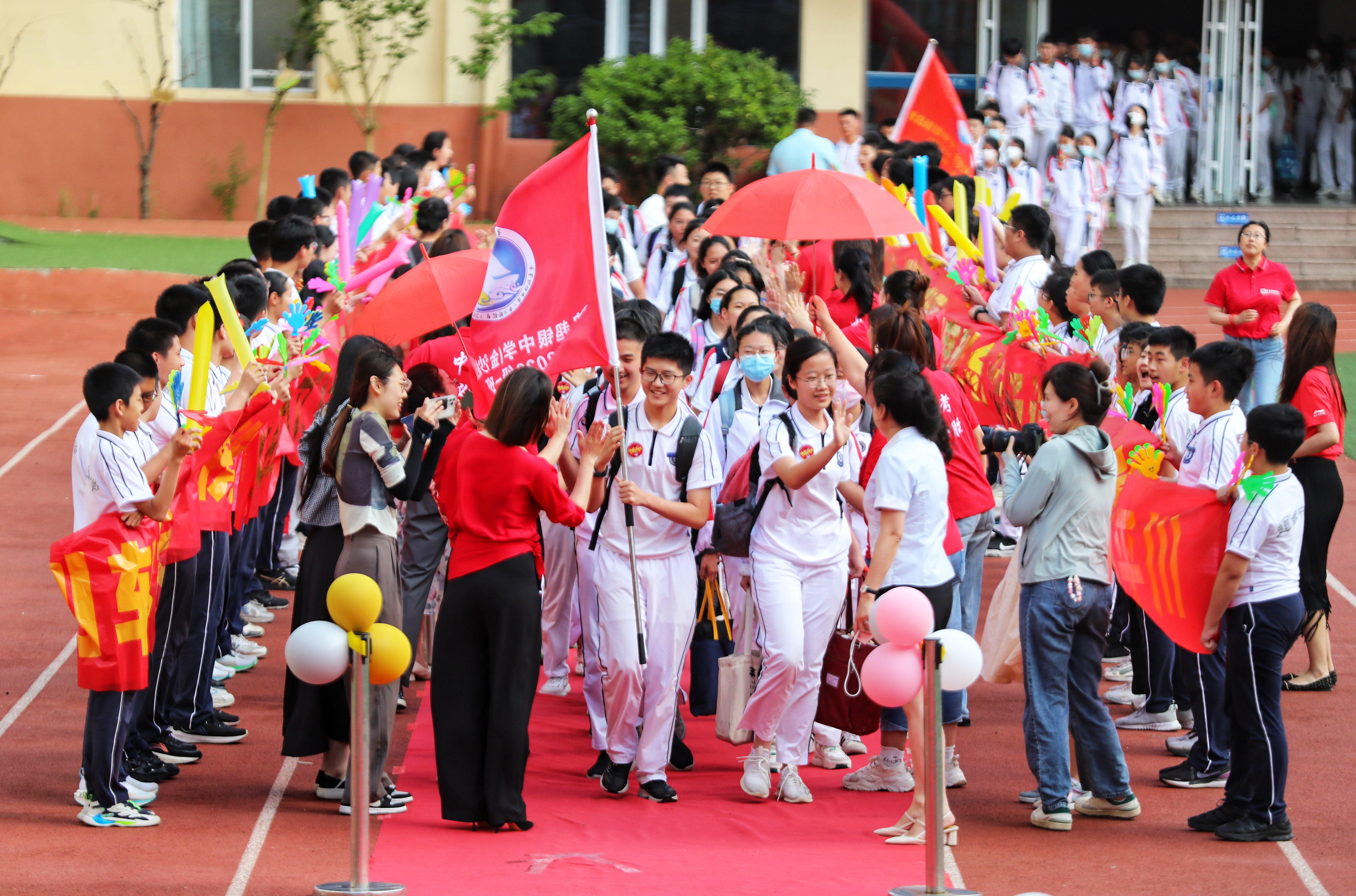 出征!超银中学第20届中考生踏上梦想之路 2023-06-12 21:44 青岛日报社 /观海新闻 韩星 12日,青岛超银中学第20届的中考生们在全体老师和初一学弟学妹的欢送声中,走上红毯,穿过“状元门”,踏上了自己的中考之路。中考,是一场青春的自我追逐,那些只问耕耘不问收获的1000多个日夜记录下了超银学子最好的模样。预祝岛城所有中考生金榜题名。(青岛日报社/观海新闻记者 韩星 责任编辑/杨海涛) 中考出征。 中考出征。 祝福。 中考出征。 中考出征。