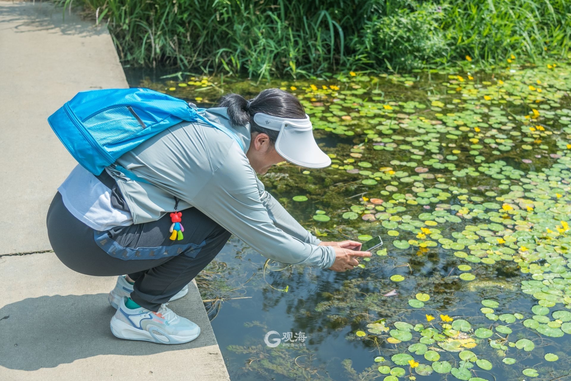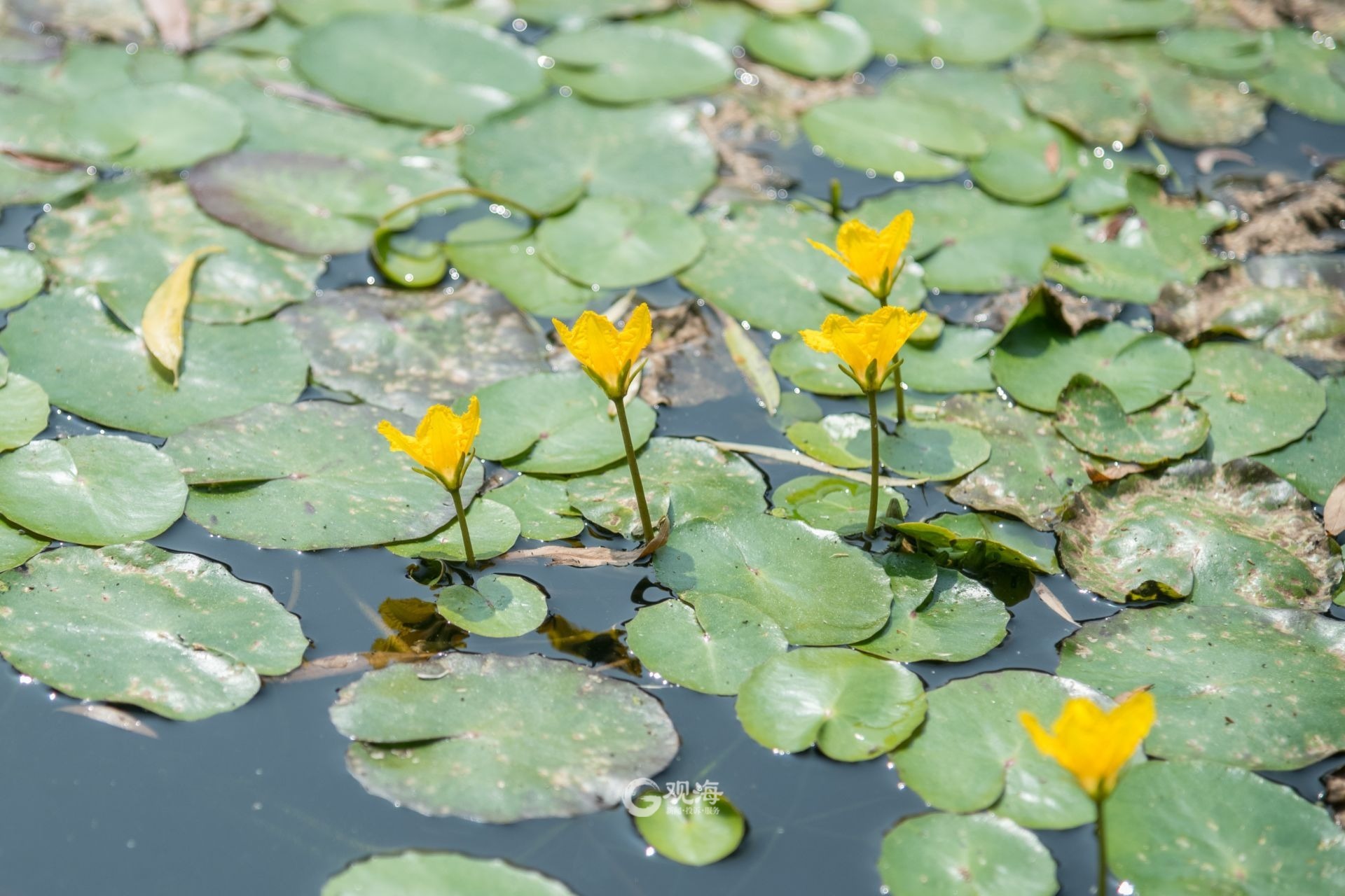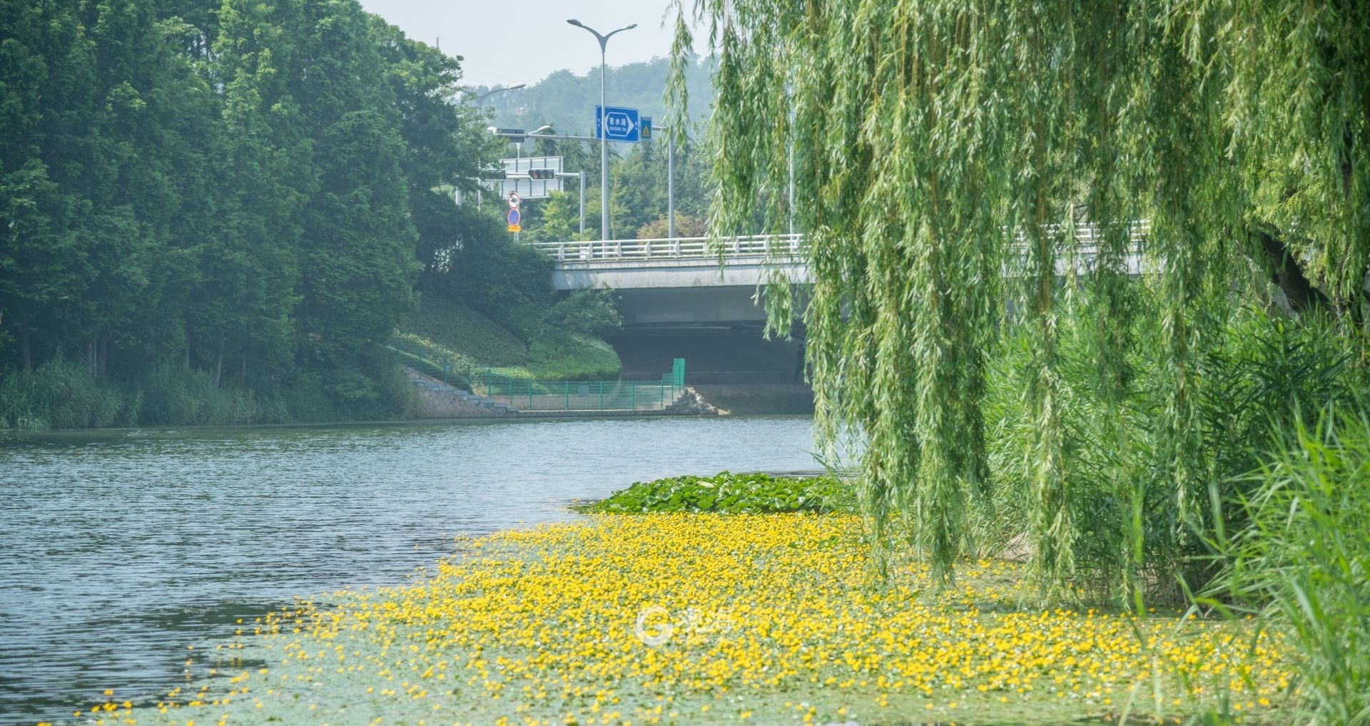 - 连片的小黄花成为河面上一道独特的夏日风景。