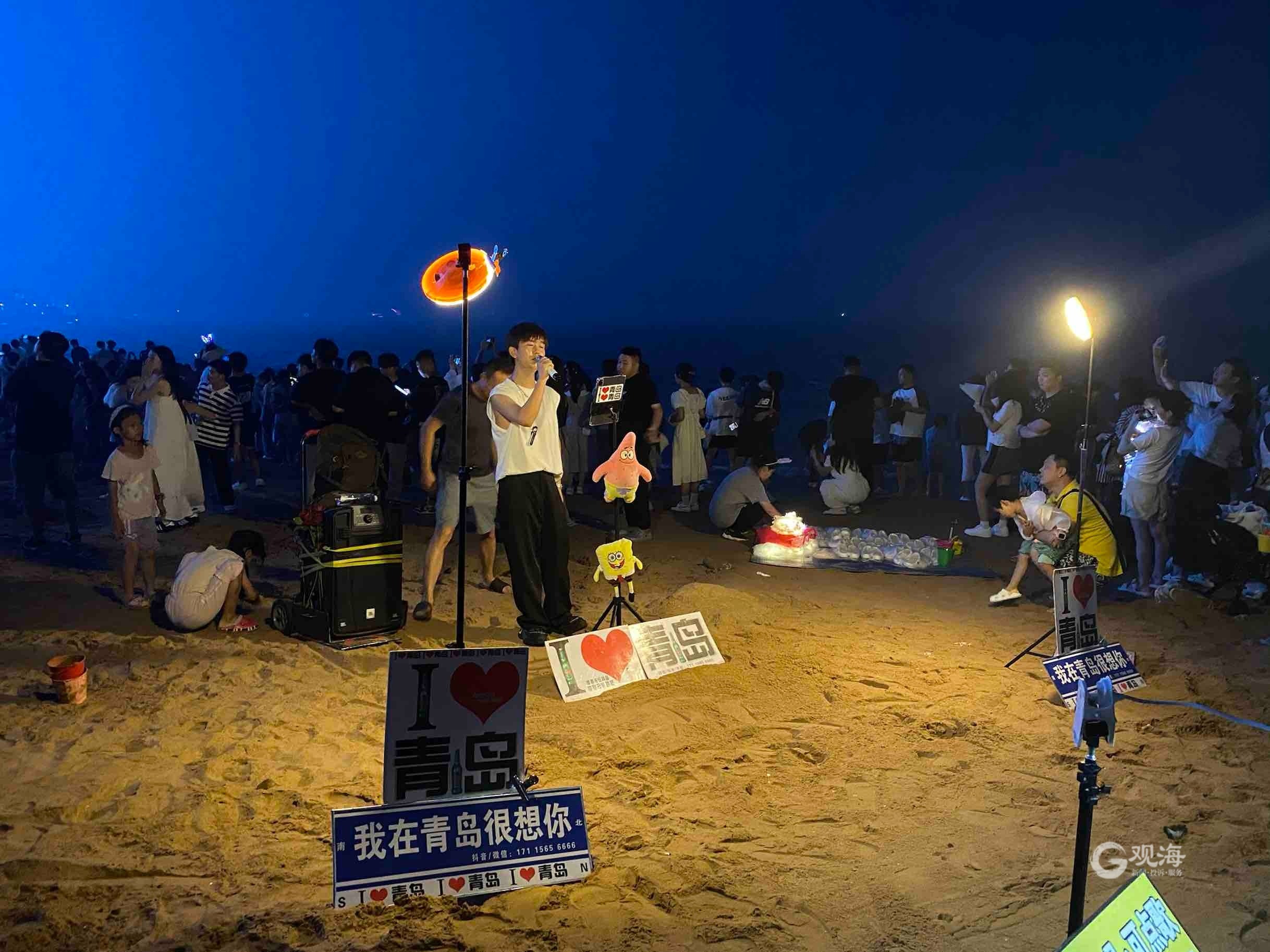 青岛日报社/观海新闻6月23日讯 青岛新晋顶流夜景打卡地在哪儿?端午假期,被网友称作“青岛夜景天花板”的第三海水浴场“顶流”人气实至名归!大海、沙滩、礁石为前景,让这里的灯光秀视野更添一份浪漫和诗意。傍晚时分,等候楼宇亮灯和灯光秀的游客几乎站满沙滩,人山人海之势盛况空前。