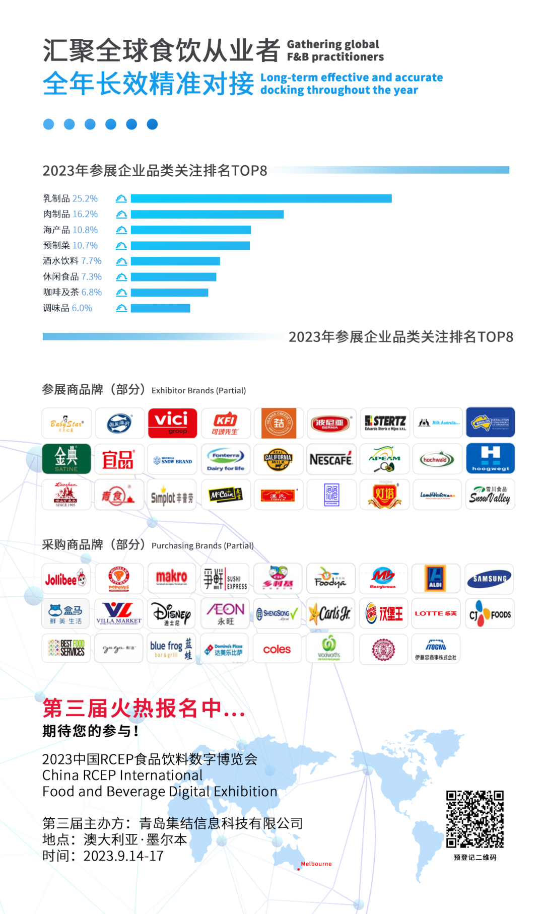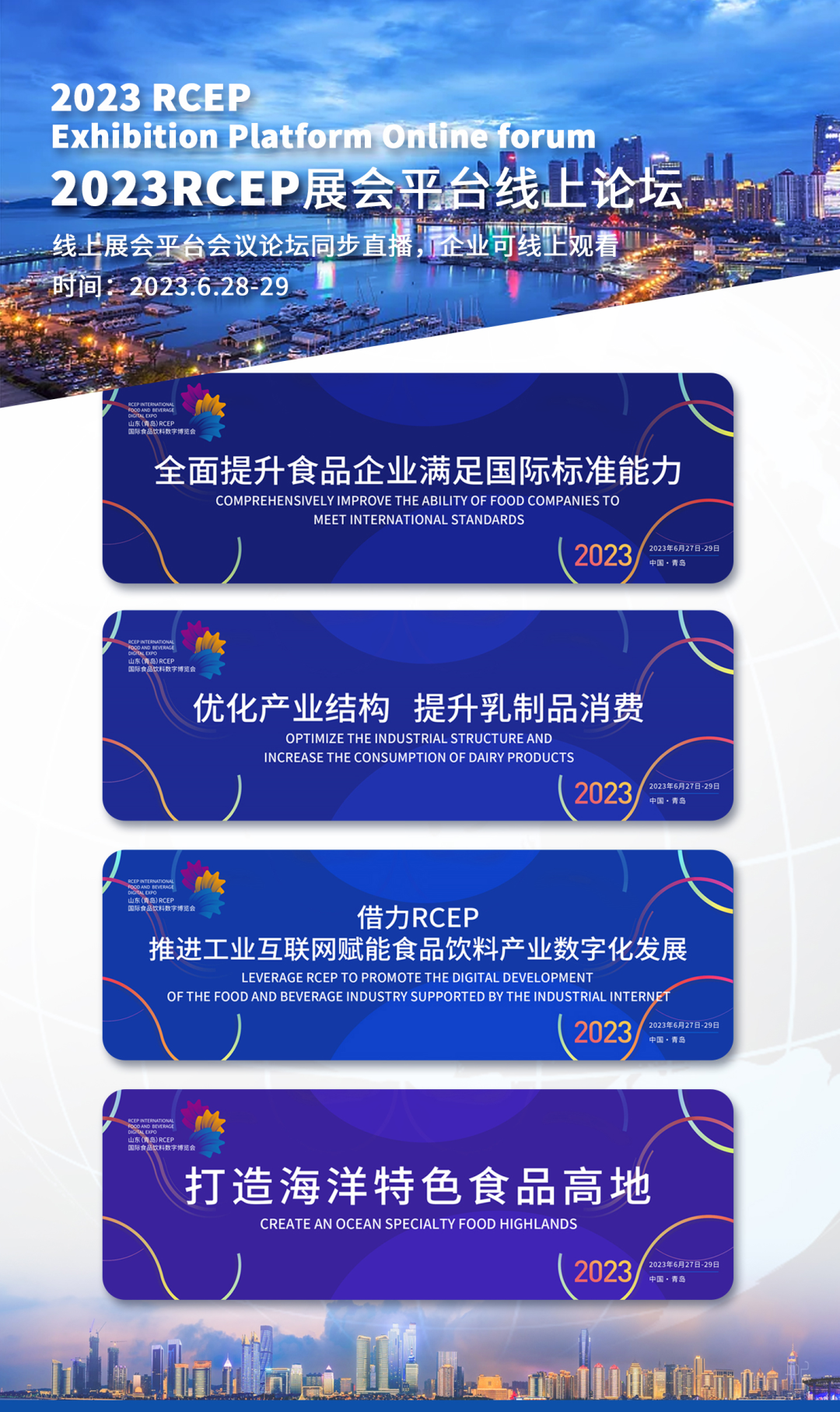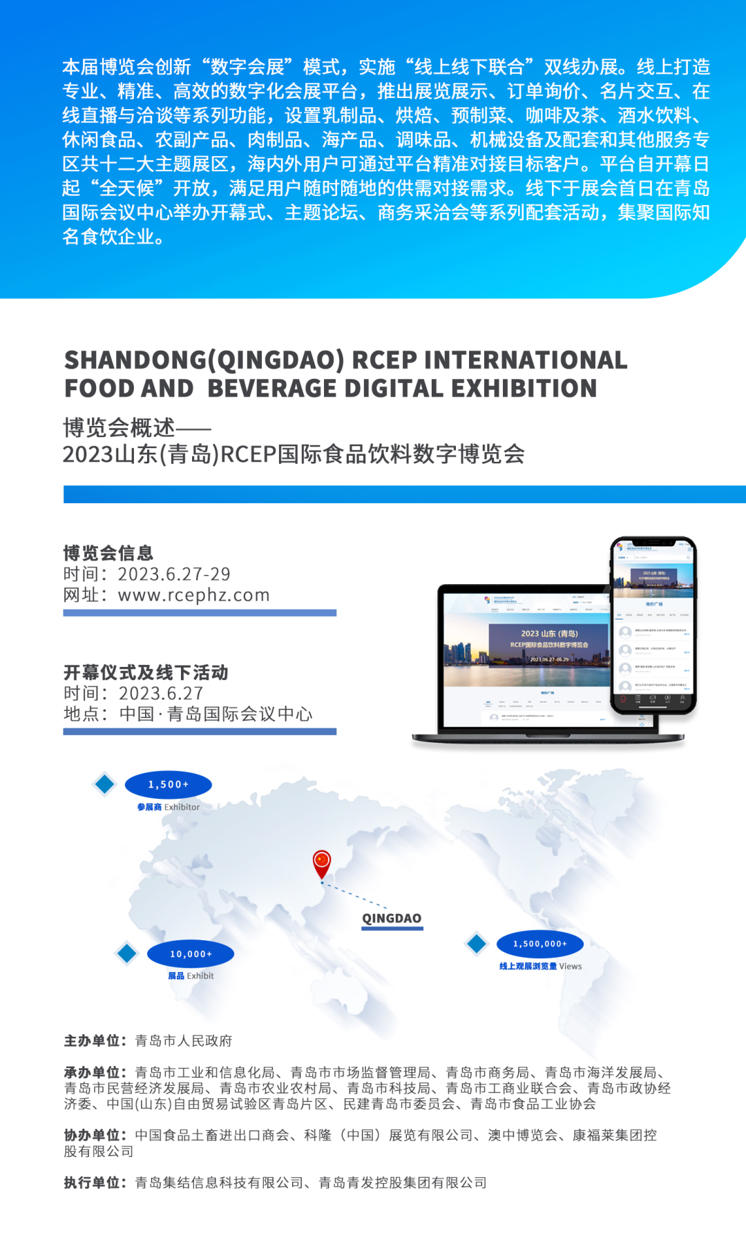 青岛日报社/观海新闻6月26日讯 以“食遍全球 数聚青岛”为主题的2023山东(青岛)RCEP国际食品饮料数字博览会将于6月27日盛大启幕!本届博览会线上“云参展”企业首次突破2000家,展品达到10000+件,累计访客数10万人、访问量150万次,参展国家达60个。经过紧锣密鼓的筹备和线上、线下的立体化推广,明天这场国际性数字博览会即将与您见面。 责任编辑:孙源熙 0