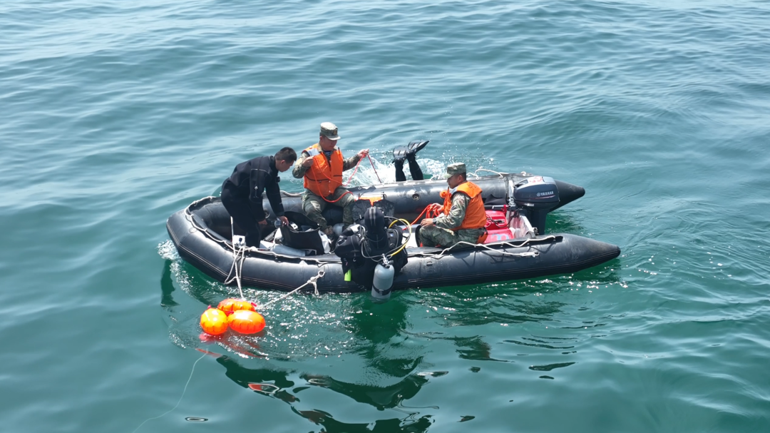 - 一波未平一波又起,水下再度传来“敌情”。惠民舰派遣反水雷蛙人组成战斗编组,紧急赶赴疑似目标海区进行反水雷作业。