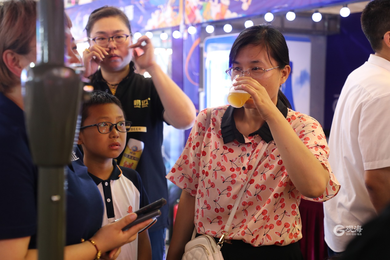 在现场市民游客免费品尝崂迈、崂金、醇岛、青象、青麦等精酿啤酒,场下热闹的品酒气氛与舞台上的劲歌一起,燃爆现场。