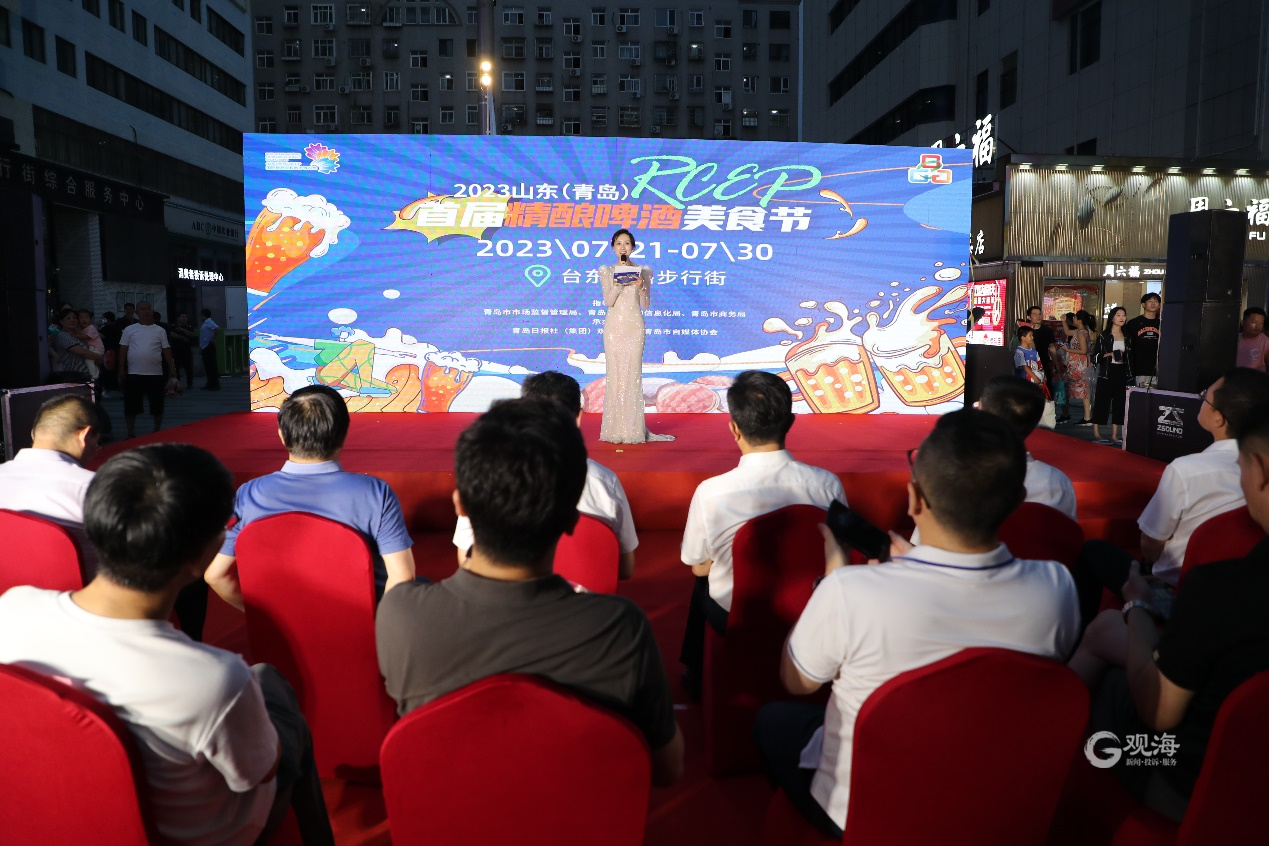 青岛日报社/观海新闻7月22日讯 喝精酿啤酒,享劲爽夏天。7月21日晚,“山东(青岛)RCEP首届精酿啤酒美食节”在台东步行街正式启动。精彩纷呈的表演、嗨翻全场的互动、激动人心的抽奖等活动将现场氛围推向高潮。