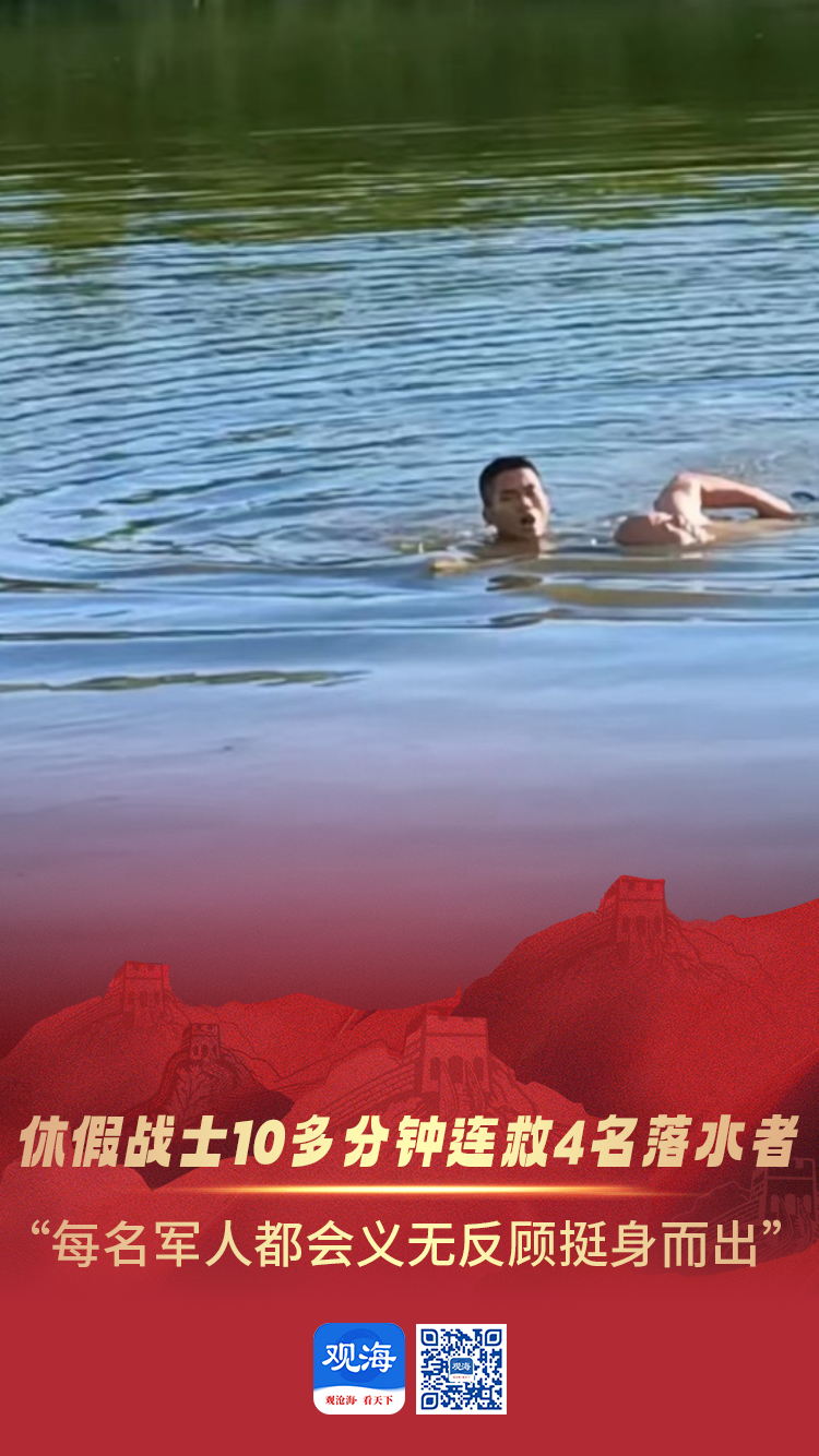 近日,广东湛江4位村民不慎落水,探亲休假战士柯东贤恰好路过水库,听到呼救后立即下水救人,在短短10多分钟内连救4人。他说:“每名军人都会义无反顾挺身而出。”