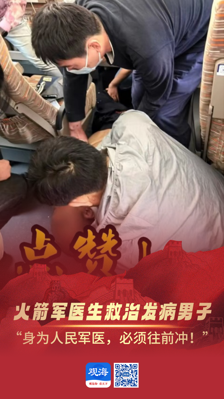 7月2日,一男子在G55次列车上突发疾病,心脏骤停,意识丧失,乘坐此列车的火箭军特色医学中心医生王帅、王峰华立即对患者进行心肺复苏。王帅说:“身为人民军医,必须往前冲!”