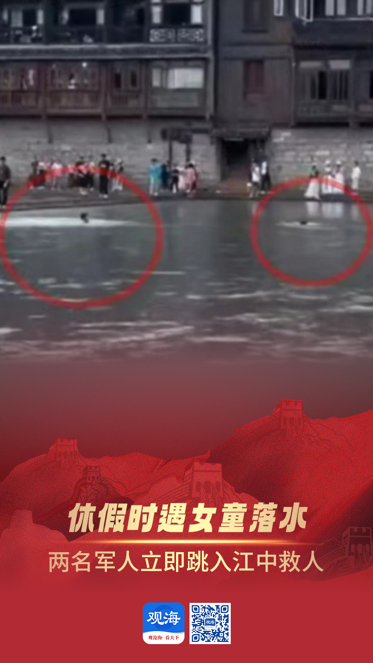 5月14日,在湖南湘西,正在休假的军人蒋康喜、蒋展朝在凤凰古城游玩时遇一名女童落水,两人飞奔跳入江中救人。据蒋康喜回忆,当时水流湍急,女童已被冲出去一段距离,自己没想太多,赶紧和战友下水将落水女童救上岸。