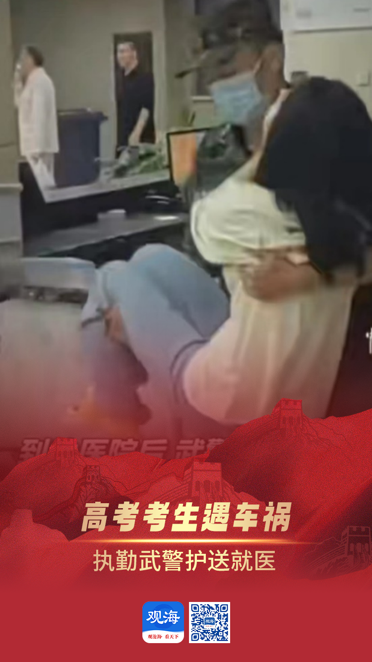 6月9日,重庆一高考考生回家途中遭遇车祸,头部受伤,附近执勤的武警官兵发现情况后紧急护送受伤考生前往医院救治。到达医院后,武警官兵迅速与医护人员对接。经治疗,该考生顺利参加了后续考试。