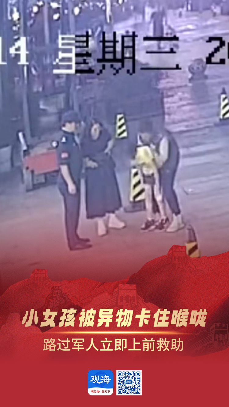 浙江宁波一小女孩不慎被异物卡住喉咙,呼吸困难。路过的军人秦城见状,立即上前采用海姆立克急救法,成功帮助女孩脱离危险,全程仅用10秒钟。