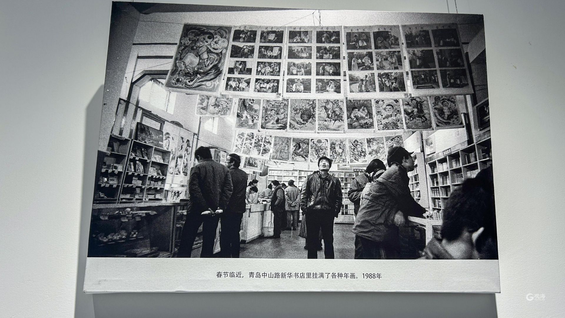 - 春节临近,青岛中山路新华书店里挂满了各种年画。(1988年)