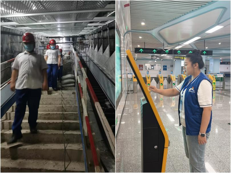 图左:王雪安在6号线参建;图右:王雪安在成都地铁跟岗培训