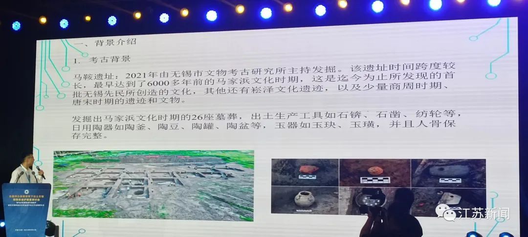 据了解,马家浜文化是无锡地区发现最早的新石器时代文化,可以说是无锡地域文明之源。在2023年6月的自然和文化遗产日活动中,无锡现场直播了无锡马鞍遗址马家浜文化两座墓葬的考古发掘,发现了两具古人骨架,复旦大学科技考古学院提取了两具骨架样本,从其中的一具骨架成功提取出了古DNA。