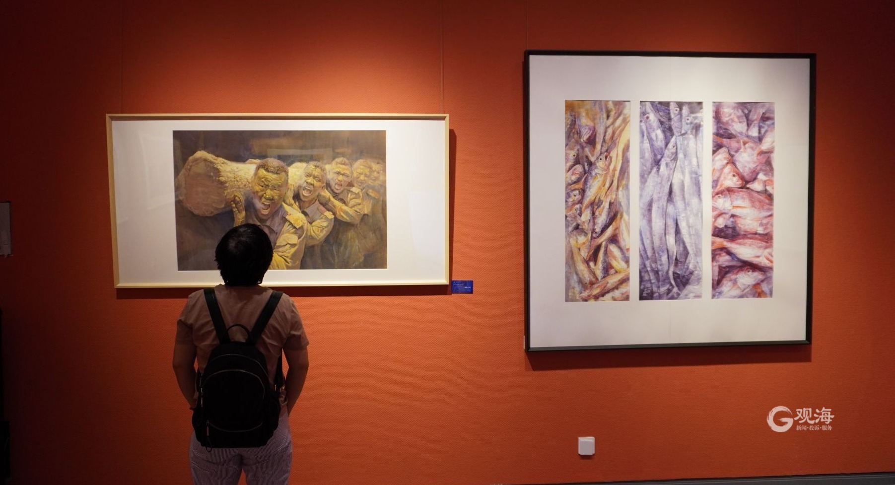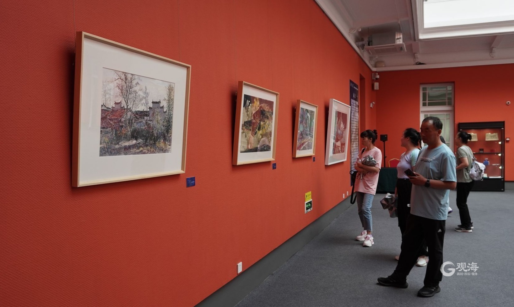 - 游客欣赏宁波美术馆馆藏水彩精品。