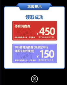 3.领取消费券。领取适合使用的体育消费券。同时可领取一张中行消费券,仅限绑定中行卡支付使用。