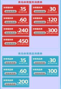 1.扫码领券:扫描下方的二维码,进入体育消费券领券平台,地点选择“青岛”,点击“体育消费券”进入领券主页面。