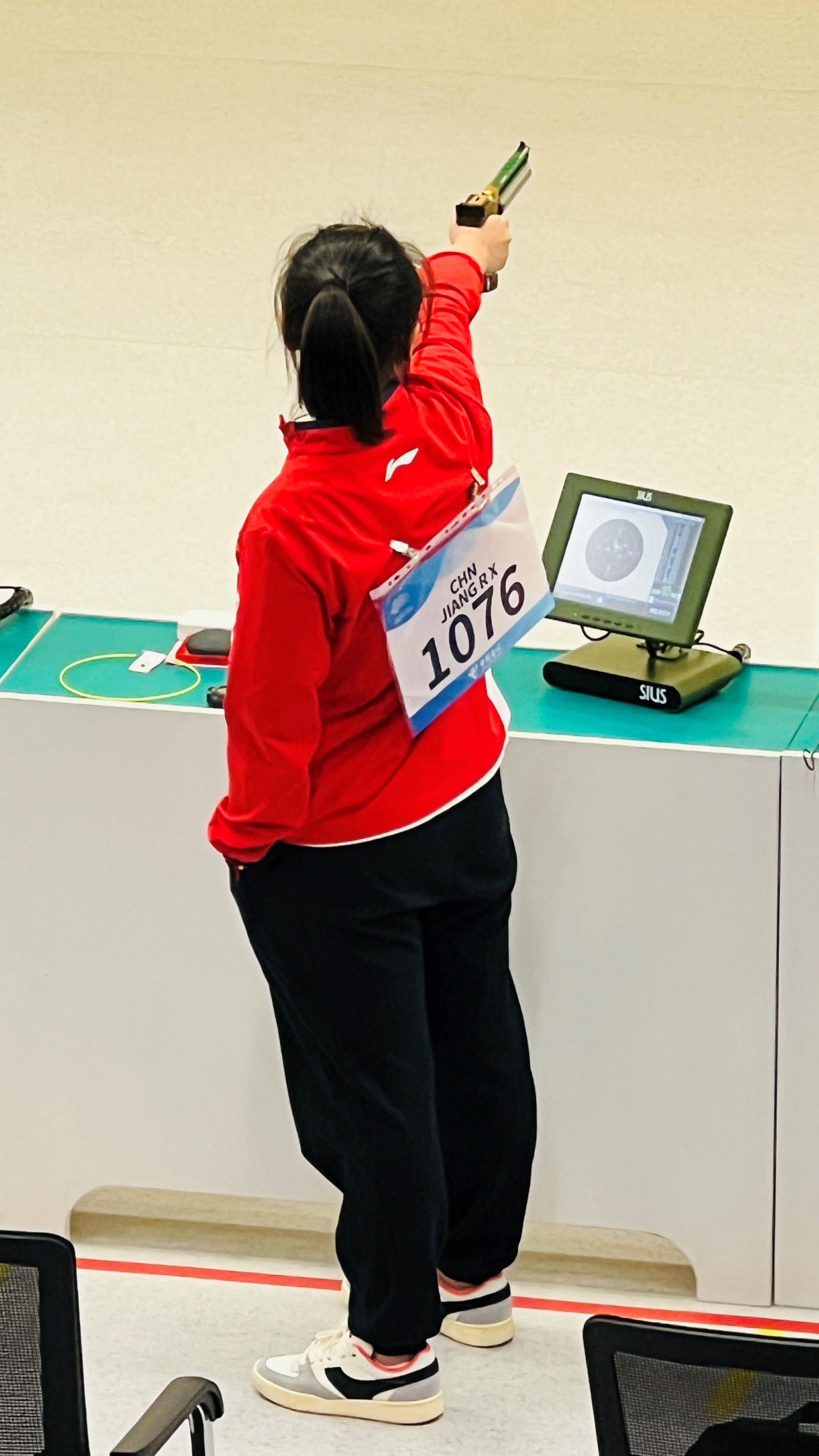 9月29日,杭州第19届亚运会射击女子10米气手枪团体决赛,由赵楠、李雪、姜冉馨组成的中国队夺得金牌。