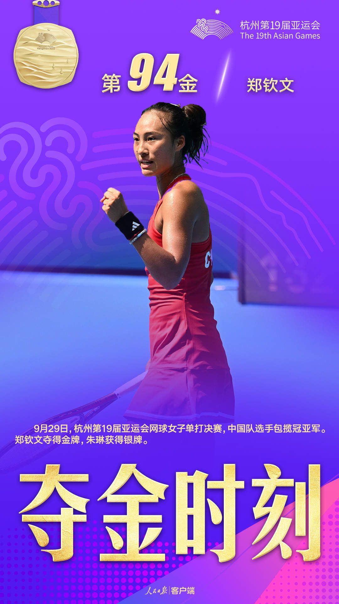 郑钦文夺得杭州亚运会网球女子单打金牌