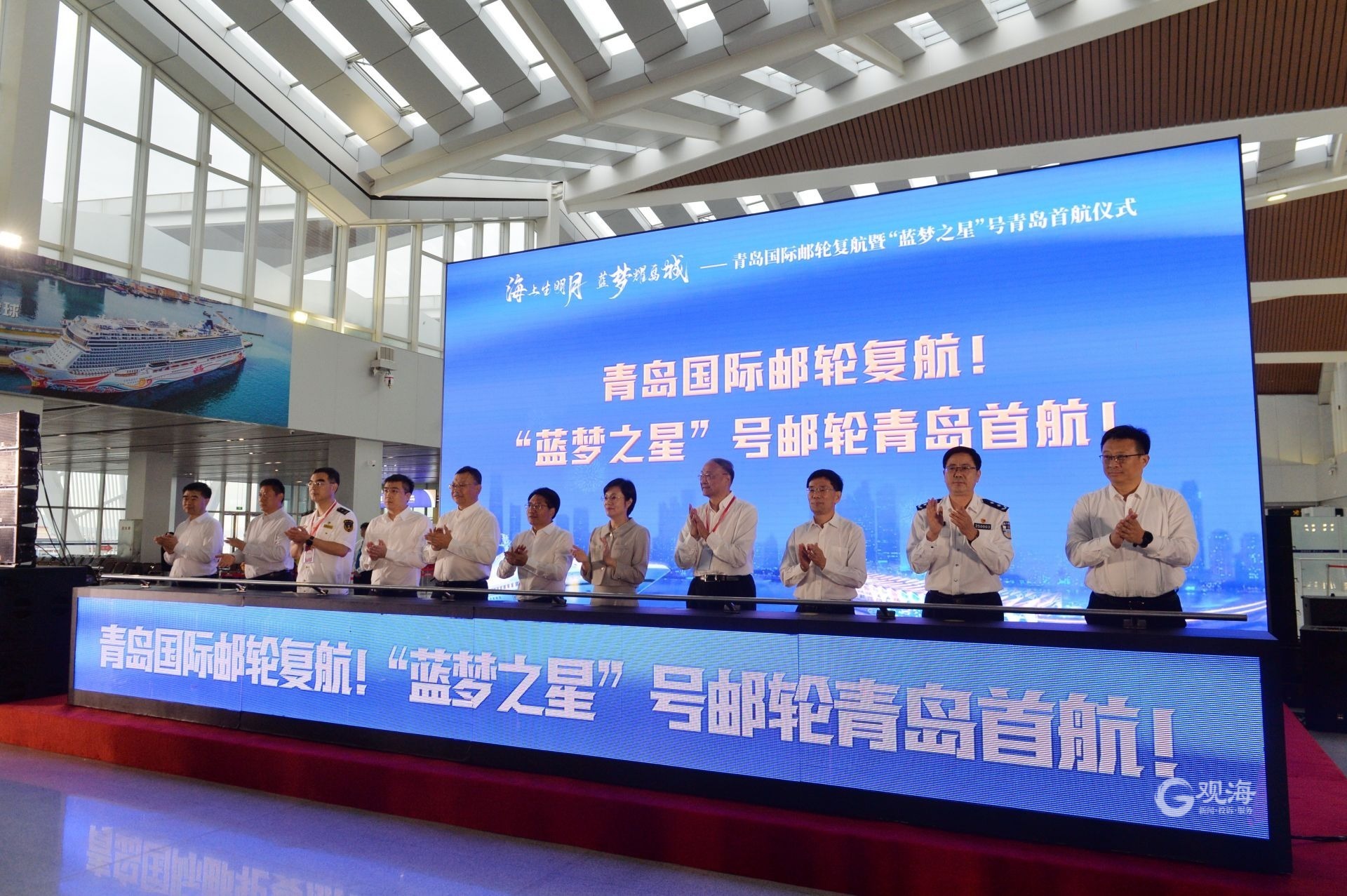 青岛日报社/观海新闻9月29日讯 今天下午,“海上生明月·蓝梦耀岛城”——青岛国际邮轮复航暨“蓝梦之星号”青岛首航仪式在青岛邮轮母港客运中心举行。晚上,“蓝梦之星号”在青首航,标志着青岛成为全国第三、北方首批实现国际邮轮复航的城市。副省长邓云锋、副市长赵燕出席,山东港口集团党委副书记、董事、总经理李奉利出席并致辞。