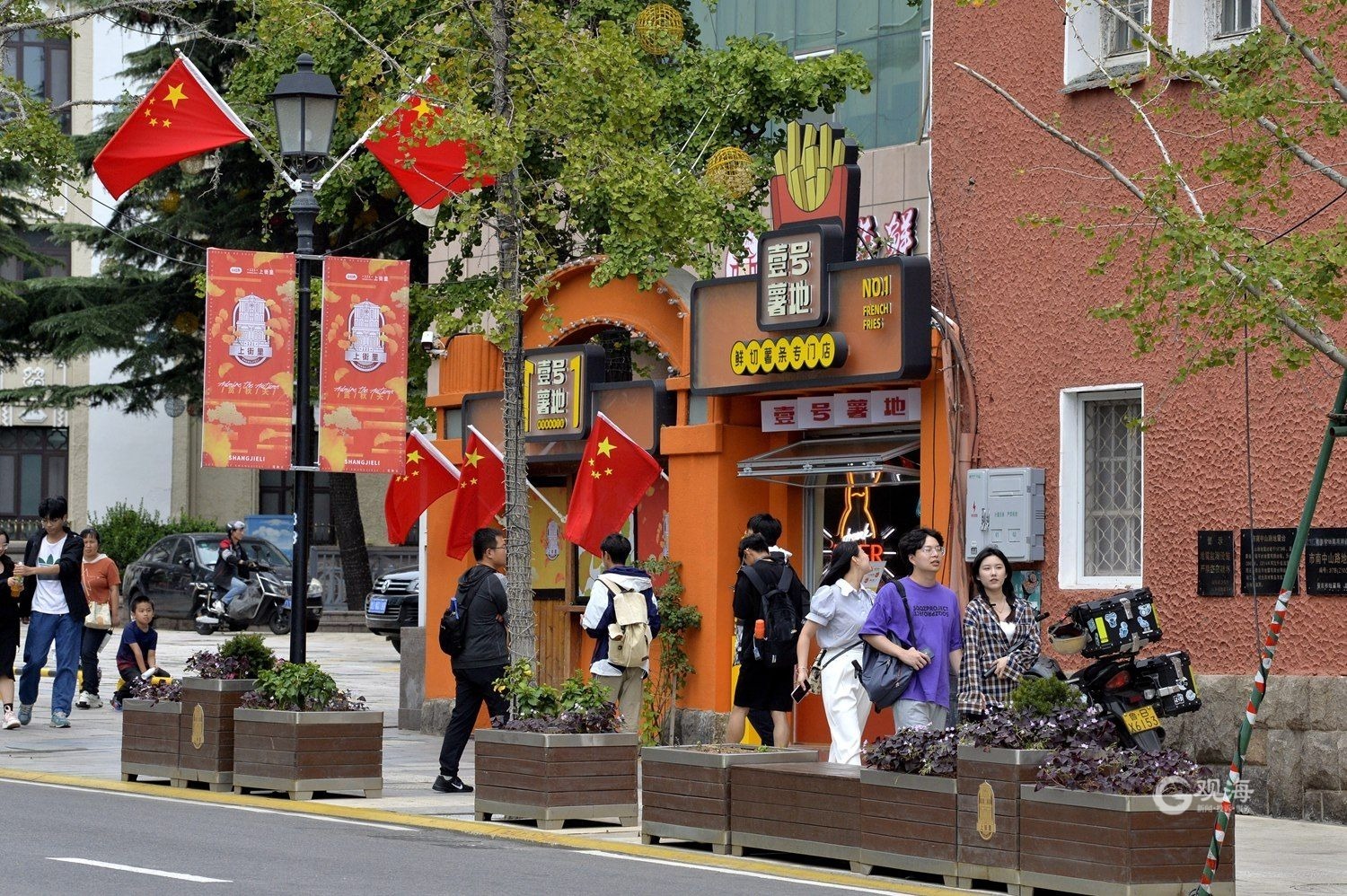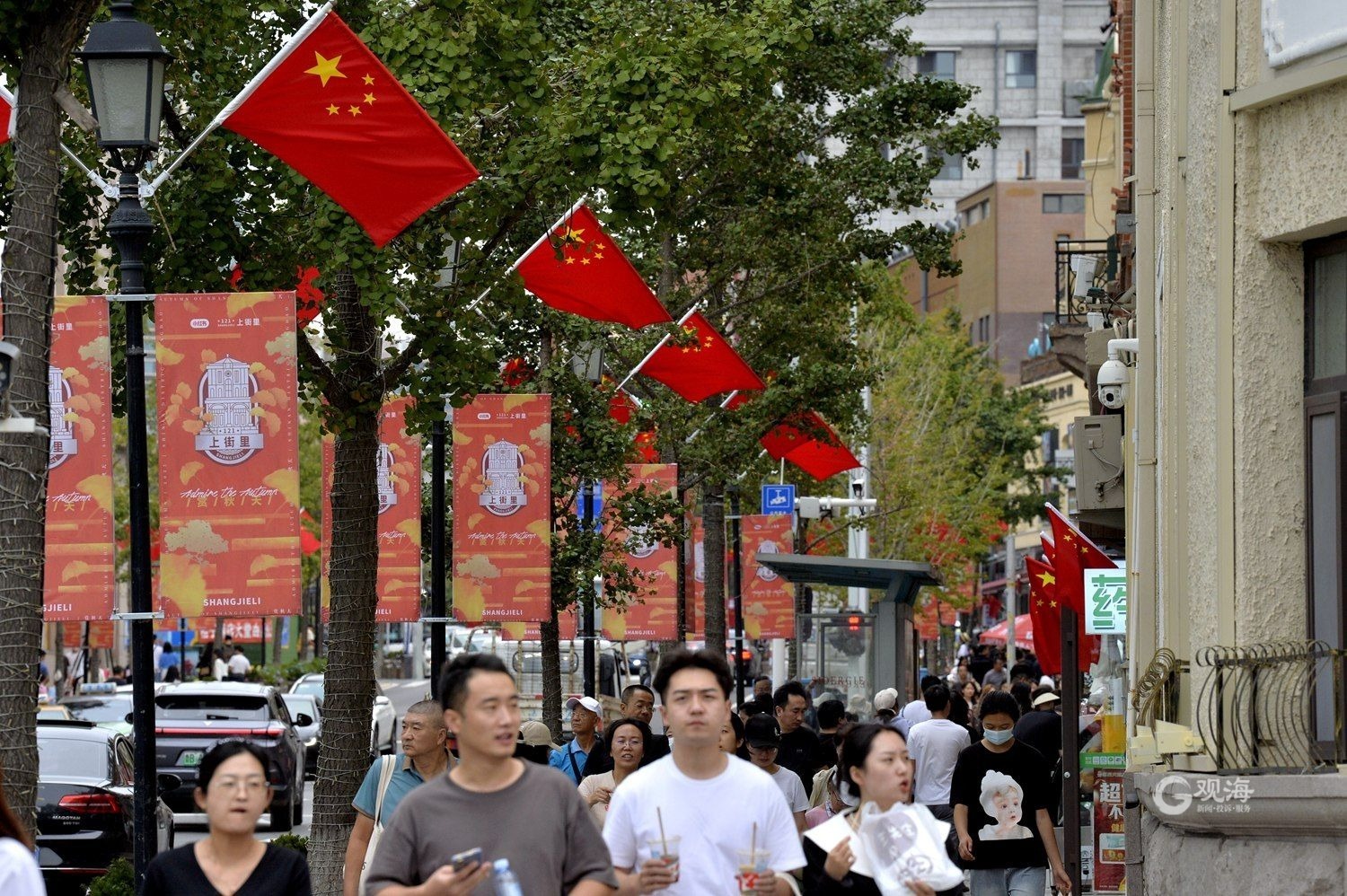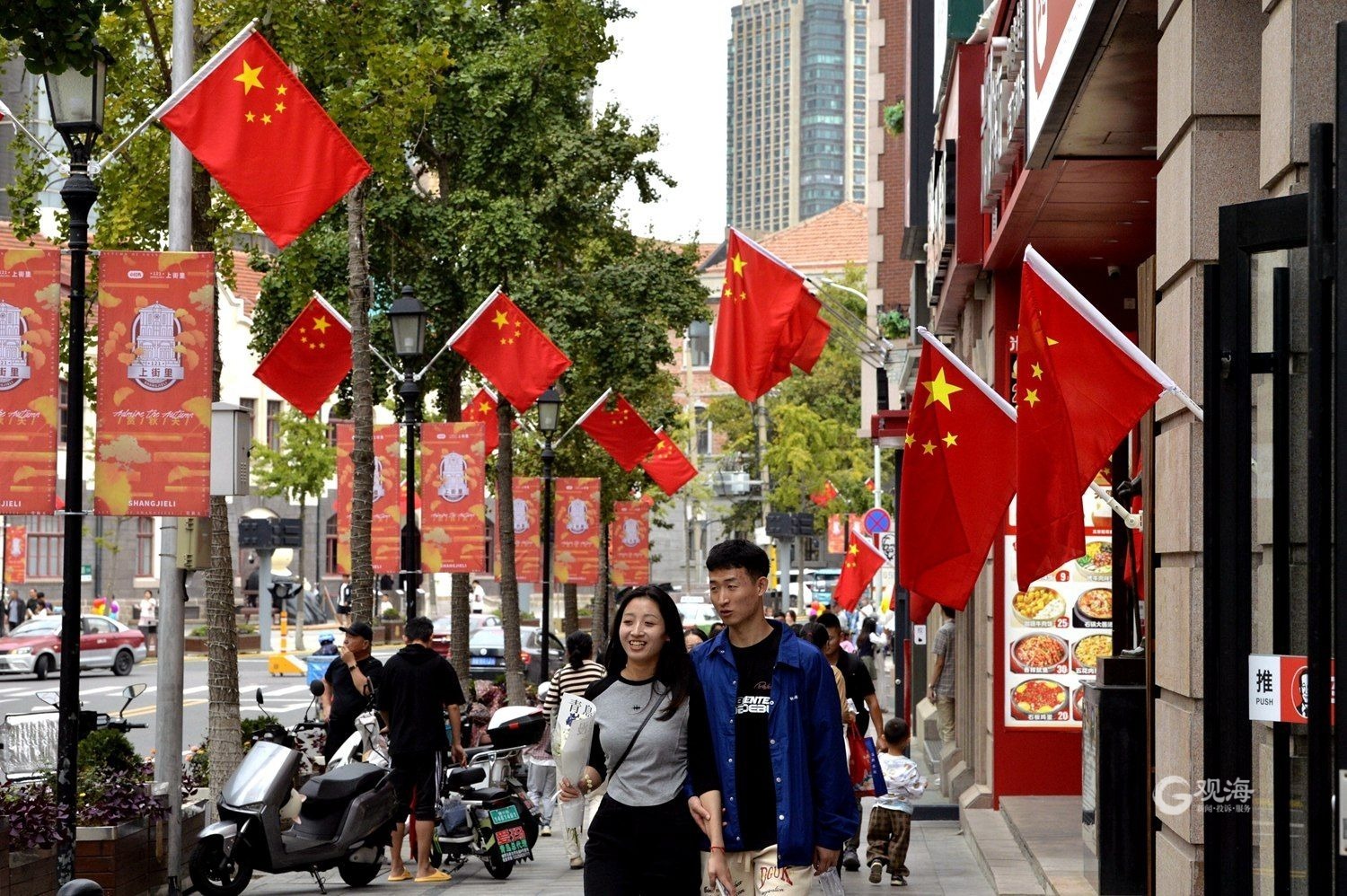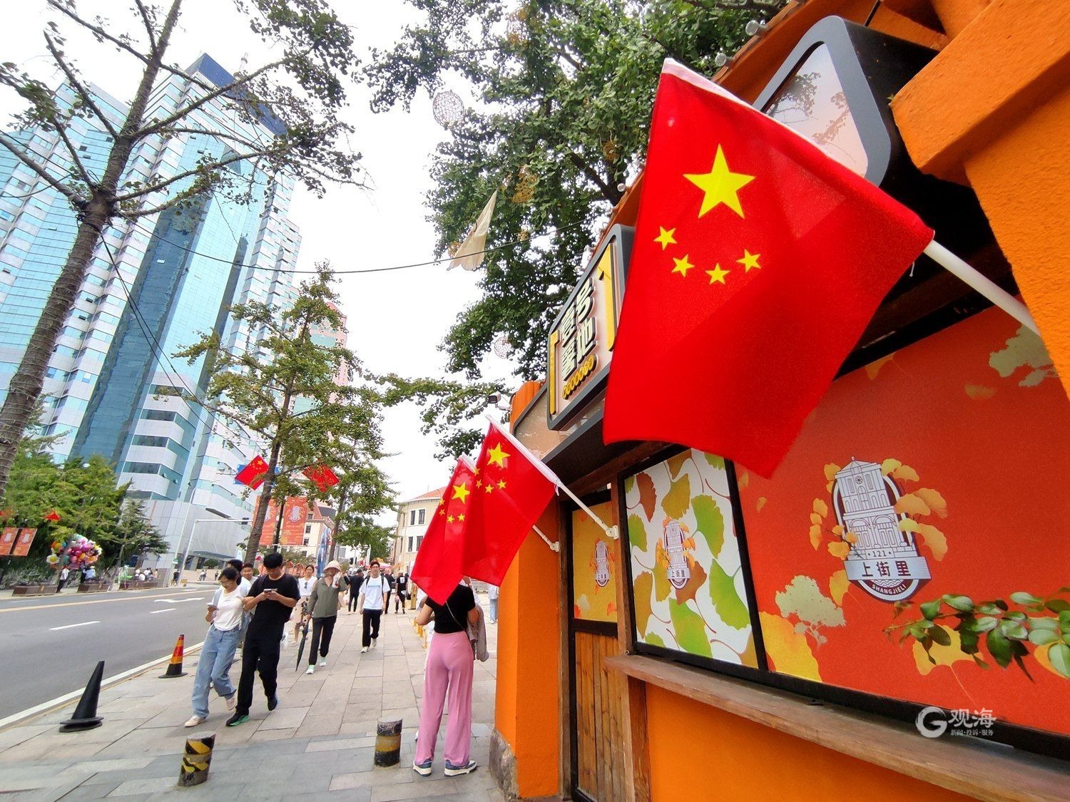 盛装迎国庆,满城“中国红” ©原创 2023-09-30 11:16 青岛日报社/观海新闻 于滈 国庆节临近,在青岛的大街小巷随处可见飘扬的五星红旗。满城洋溢着“中国红”,营造出喜庆祥和的节日氛围。(青岛日报/观海新闻记者 于滈 摄影报道) 鲜艳的五星红旗飘扬在大街小巷。 满城洋溢着“中国红”。 游客挥舞着手中的五星红旗。 摊位前也悬挂了五星红旗。 “中国红”成为节日主打色。 快艇上悬挂了五星红旗。