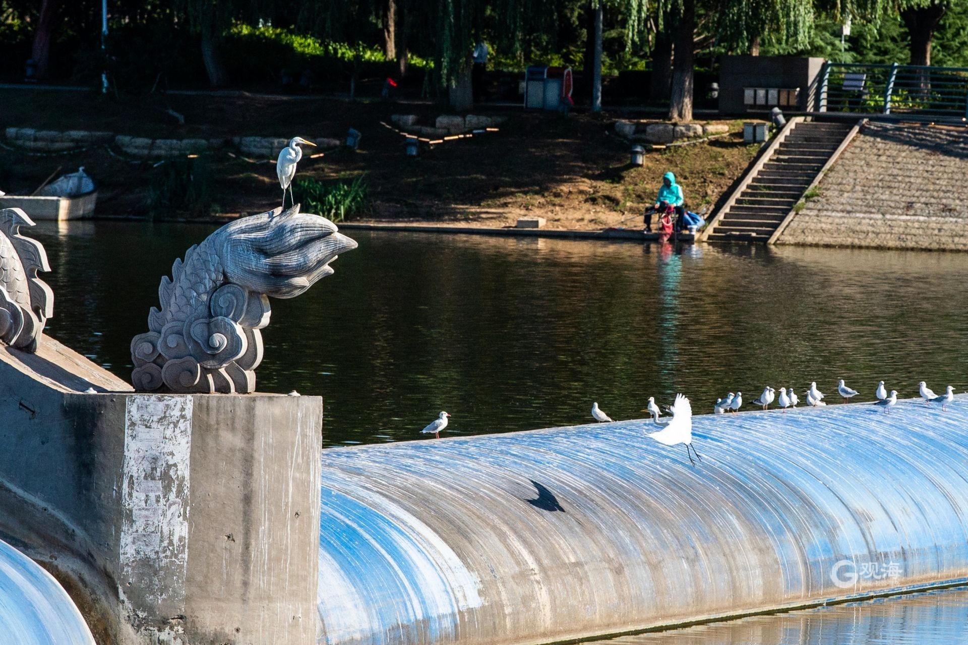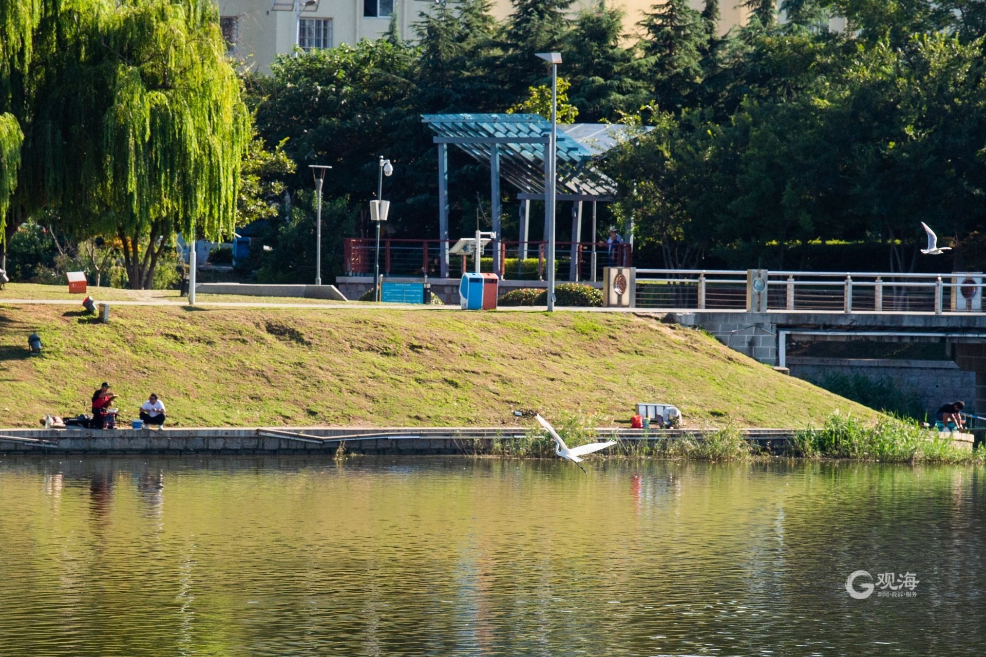 列队觅食,白沙河水鸟“抢秋膘” ©原创 2023-10-07 14:46 青岛日报社/观海新闻 于滈 金秋时节,白沙河畔色彩斑斓、景致迷人。近年来,白沙河水质和两岸景观的提升,为水鸟提供了良好的栖息环境。记者在白沙河流亭段看到,蓝天白云下水光潋滟、草木葱茏。白鹭、苍鹭、红嘴鸥等水鸟时而展翅飞翔、翩翩起舞,时而优雅地在水草间漫步,呈现出一幅水鸟翔集的美丽画卷。(青岛日报/观海新闻记者 于滈 摄影报道) 水鸟在堤坝上列队。 时而站在高处。 时而振翅高飞。 时而低空盘旋。 近年来,白沙河水质和两岸景观的提升,为水鸟提供了良好的栖息环境。 白沙河水光潋滟、草木葱茏。