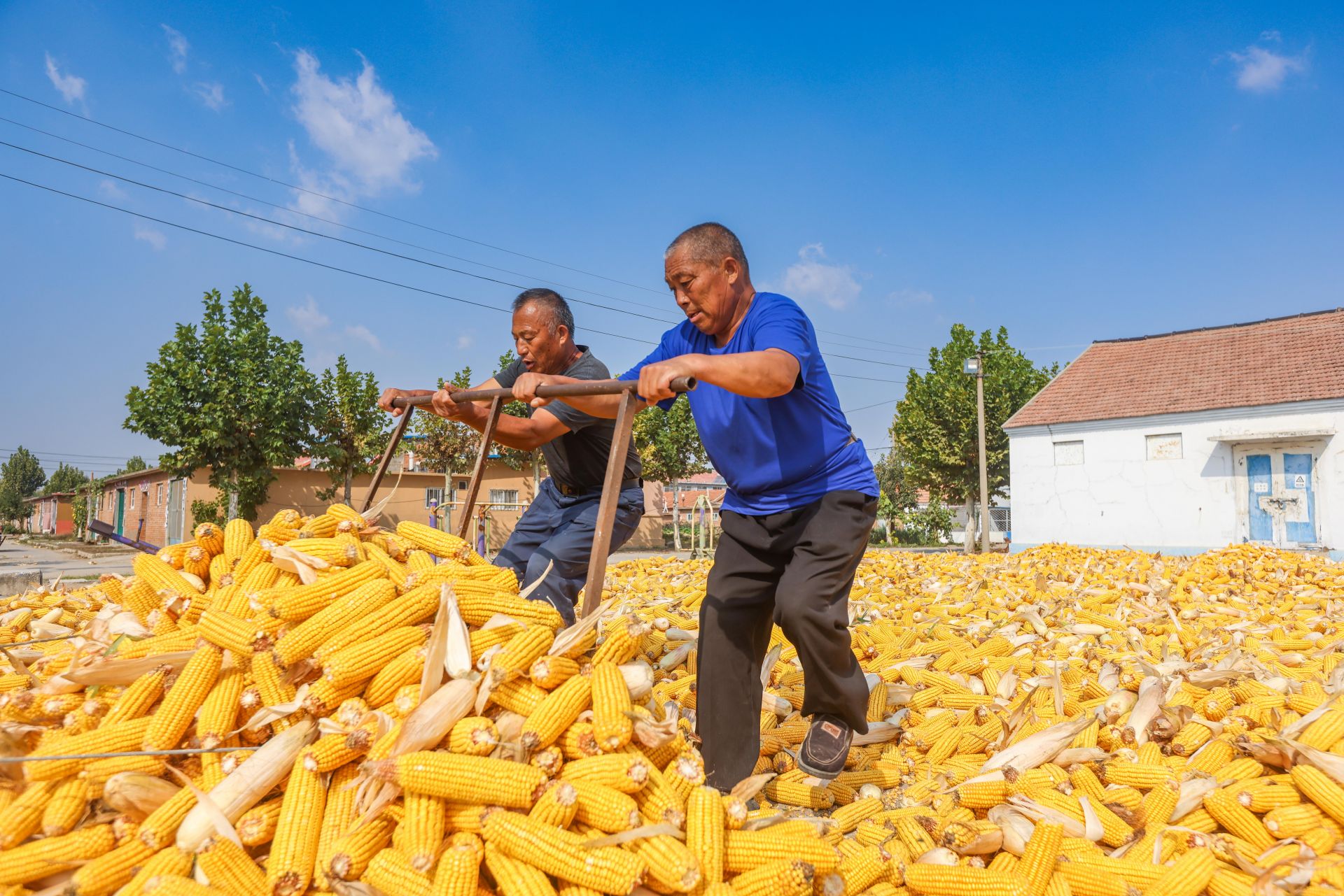 满村尽披“黄金甲”!莱西78万亩玉米丰收啦 2023-10-09 14:40 青岛日报社/观海新闻 张言哲 目前,莱西市的78万亩玉米正陆续成熟,迎来大面积收获,当地抢抓有利天气加紧收割作业,确保秋粮丰产丰收、颗粒归仓。随着玉米的陆续收获,莱西大地也渐渐铺满了令人心安的金黄色调。(观海特约摄影师 张言哲|责任编辑 樊蓉) 莱西市夏格庄镇梁家庄村被金黄的玉米覆盖。 莱西市夏格庄镇五四农场,农场工人正在晾晒玉米。 刚收割下的黄金玉米。 农场工人正在摊开玉米晾晒。 农场工人晾晒玉米。 农场工人分拣玉米。