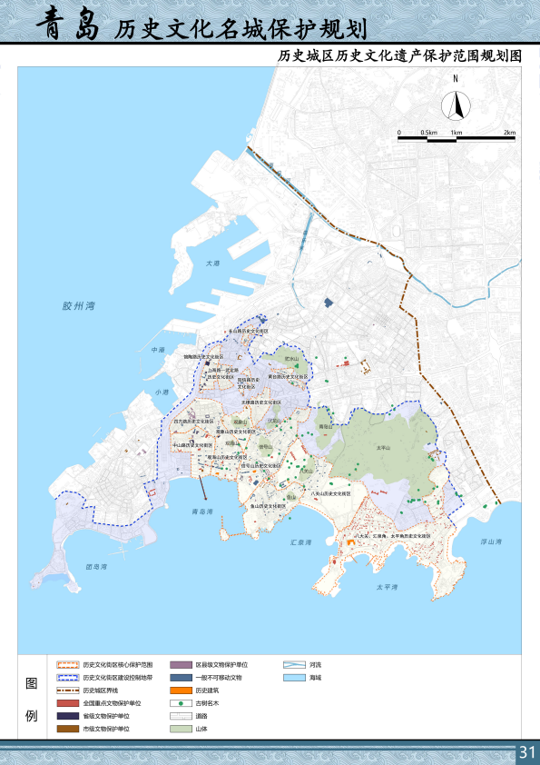1.保护以青岛历史城区为主体的历史文化遗产保护核心区;