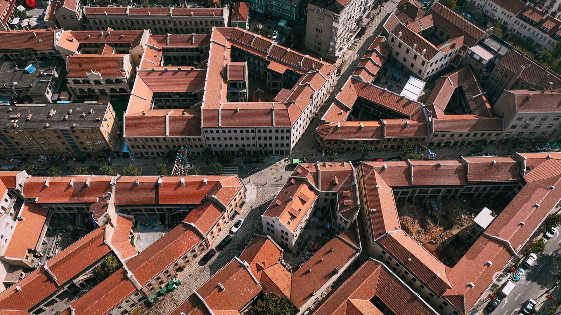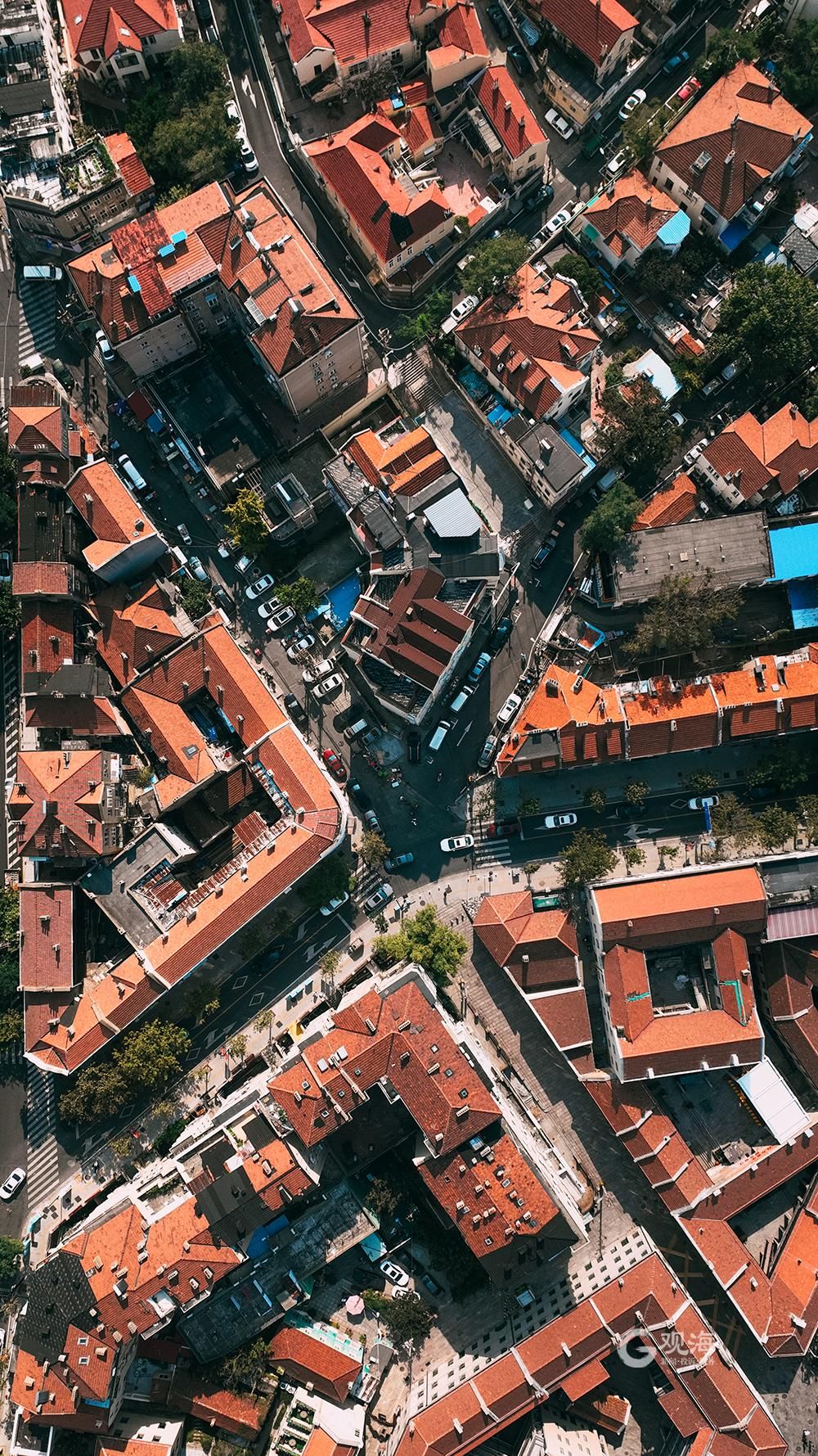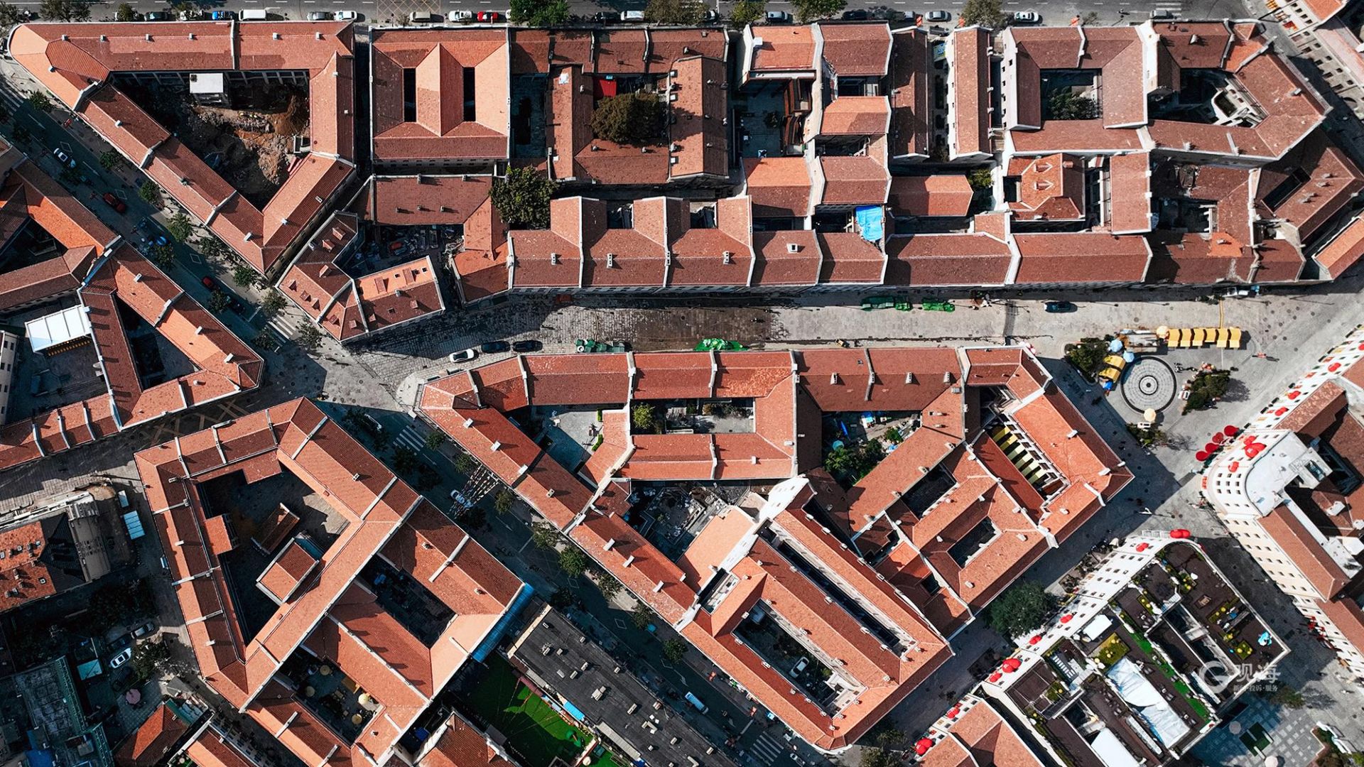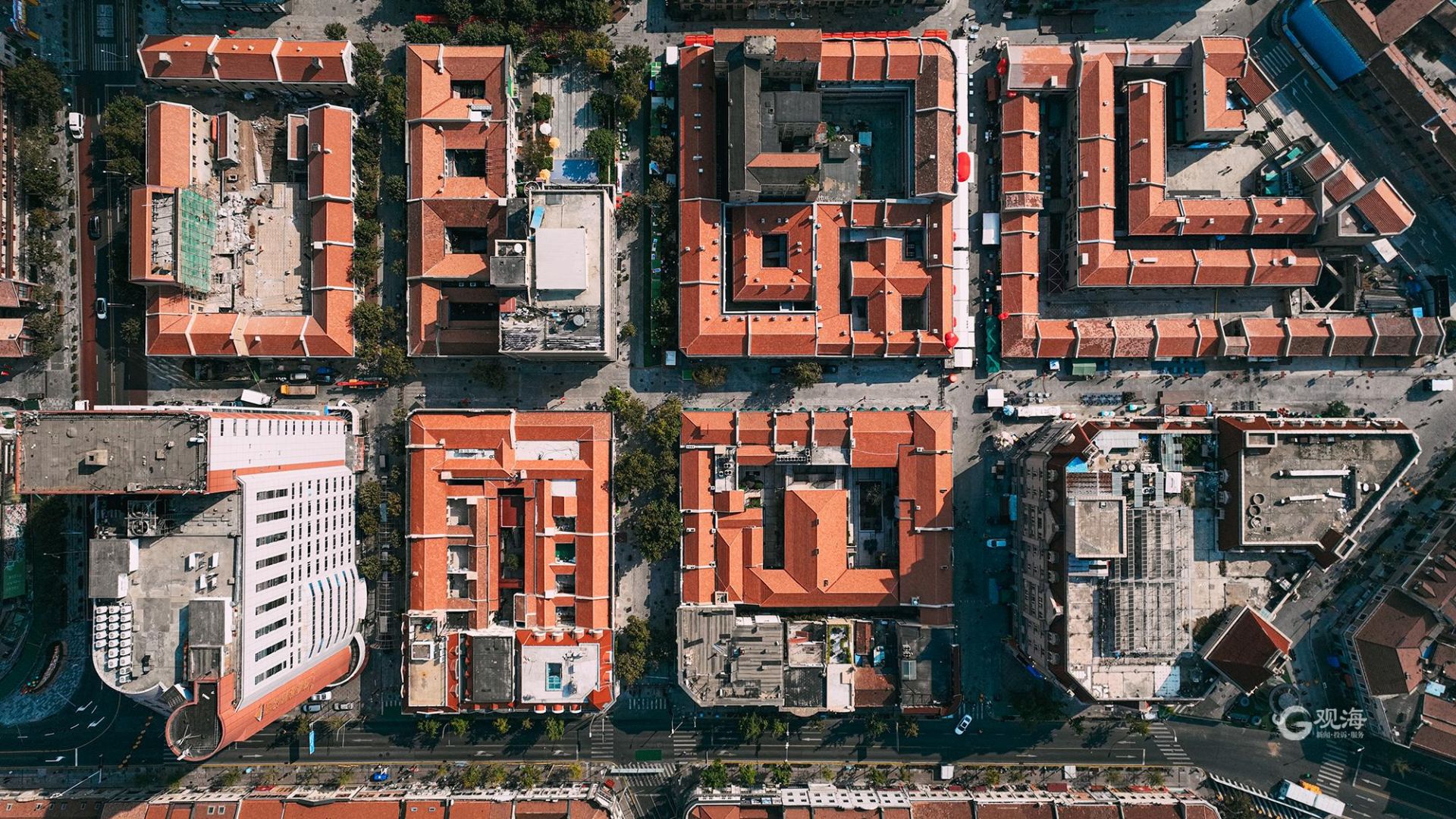 - 在航拍视角下可以看到,里院建筑形状多变,不拘泥于长方形、三角形、多边形。