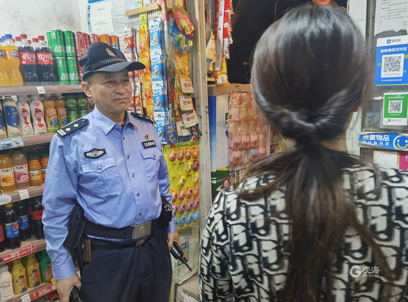 何善友巡逻时在走访群众。 刘卓毅 摄