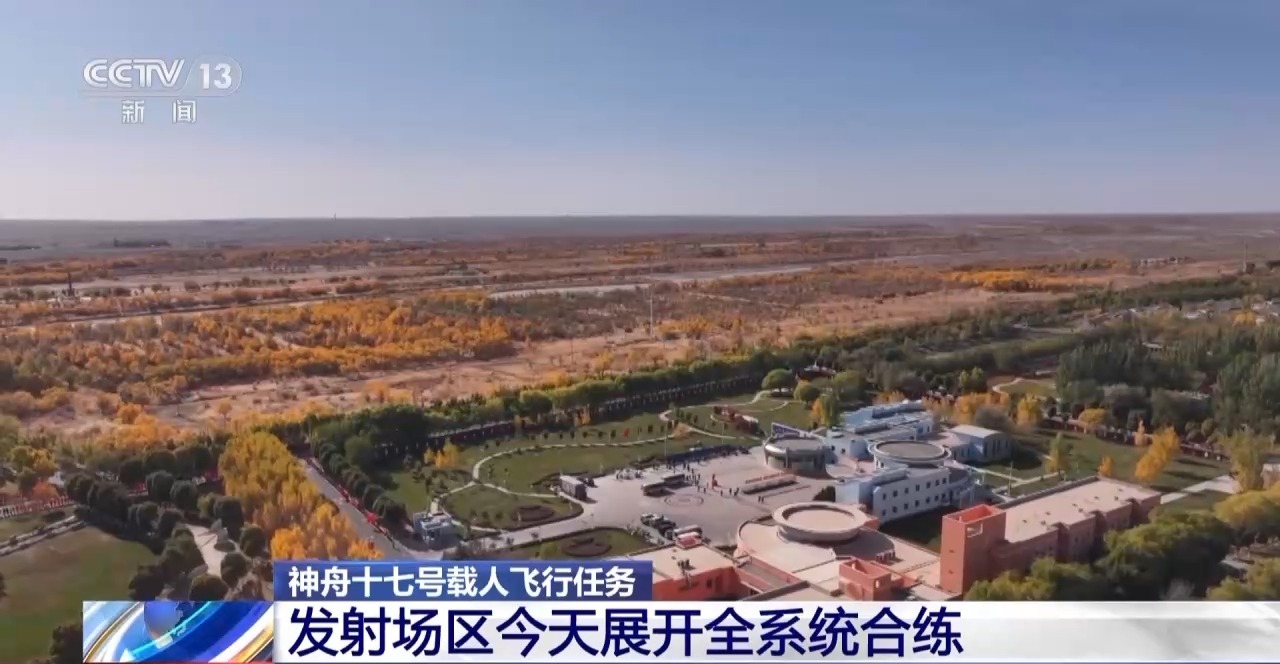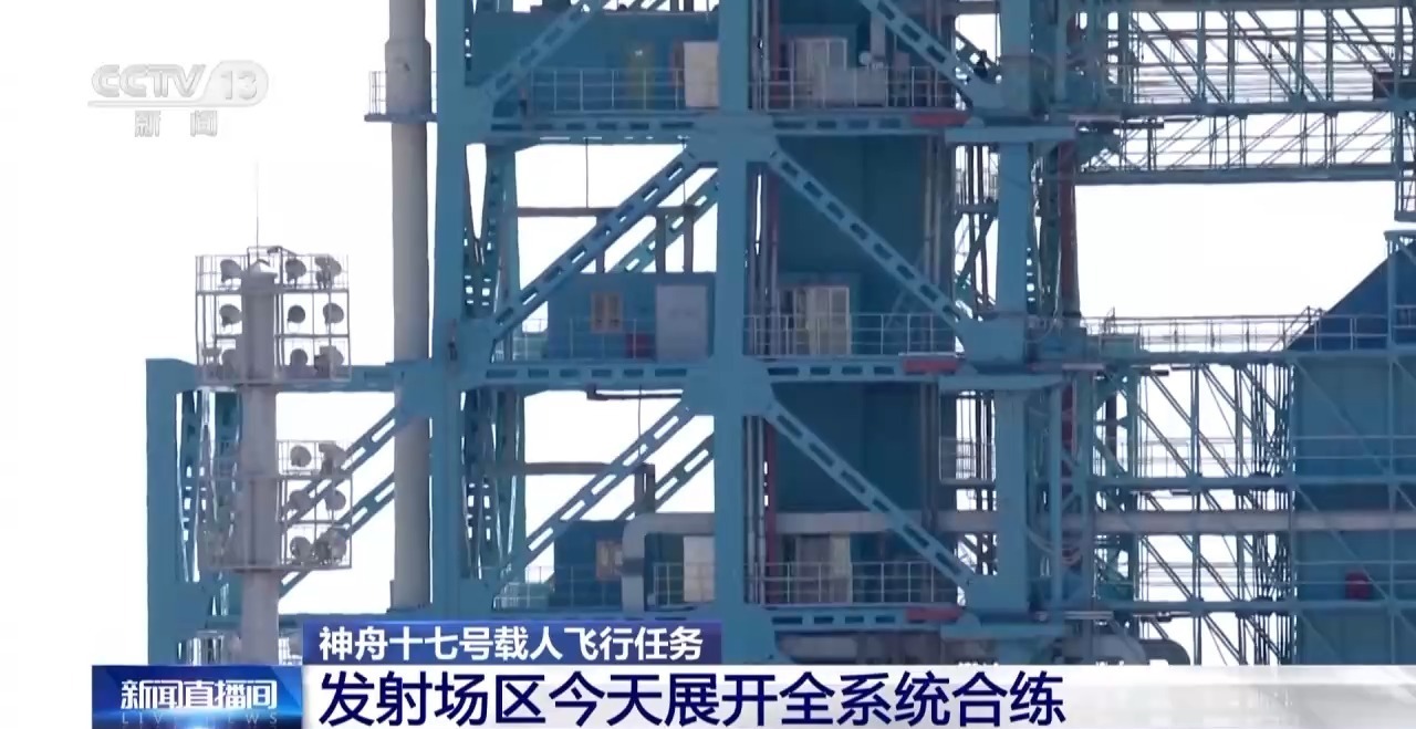 总台央视记者 苏洲:这里是酒泉卫星发射中心,在我身后,即将出征的神舟十七号载人飞船就包裹在塔架内。今天发射场进行了全系统发射演练,检查所有的发射工作是否完全准备到位。