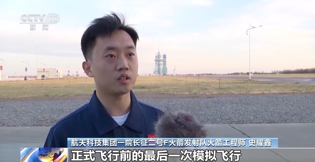 航天科技集团一院长征二号F火箭发射队火箭工程师 史耀鑫:在今天的全系统发射演练中,我们火箭系统主要完成了正式飞行前的最后一次模拟飞行,此次飞行过程为全过程模拟飞行,覆盖了从点火到船箭分离的动力系统和电气系统的全部指令动作。全系统发射演练结束后,标志着火箭各系统已经做好充分的准备,等待下一步的推进剂加注和火箭正式点火升空。