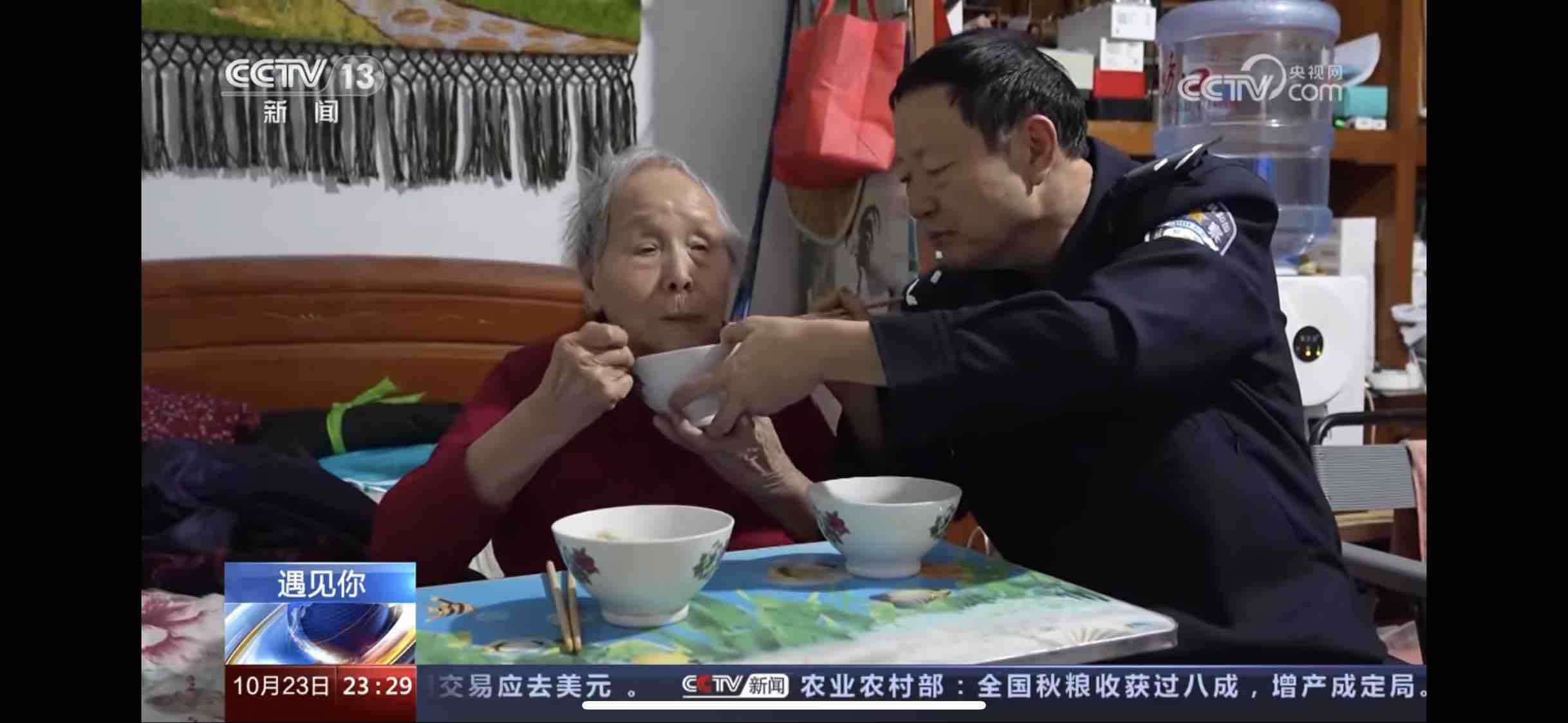 马怀龙照顾辖区老人。央视报道截图